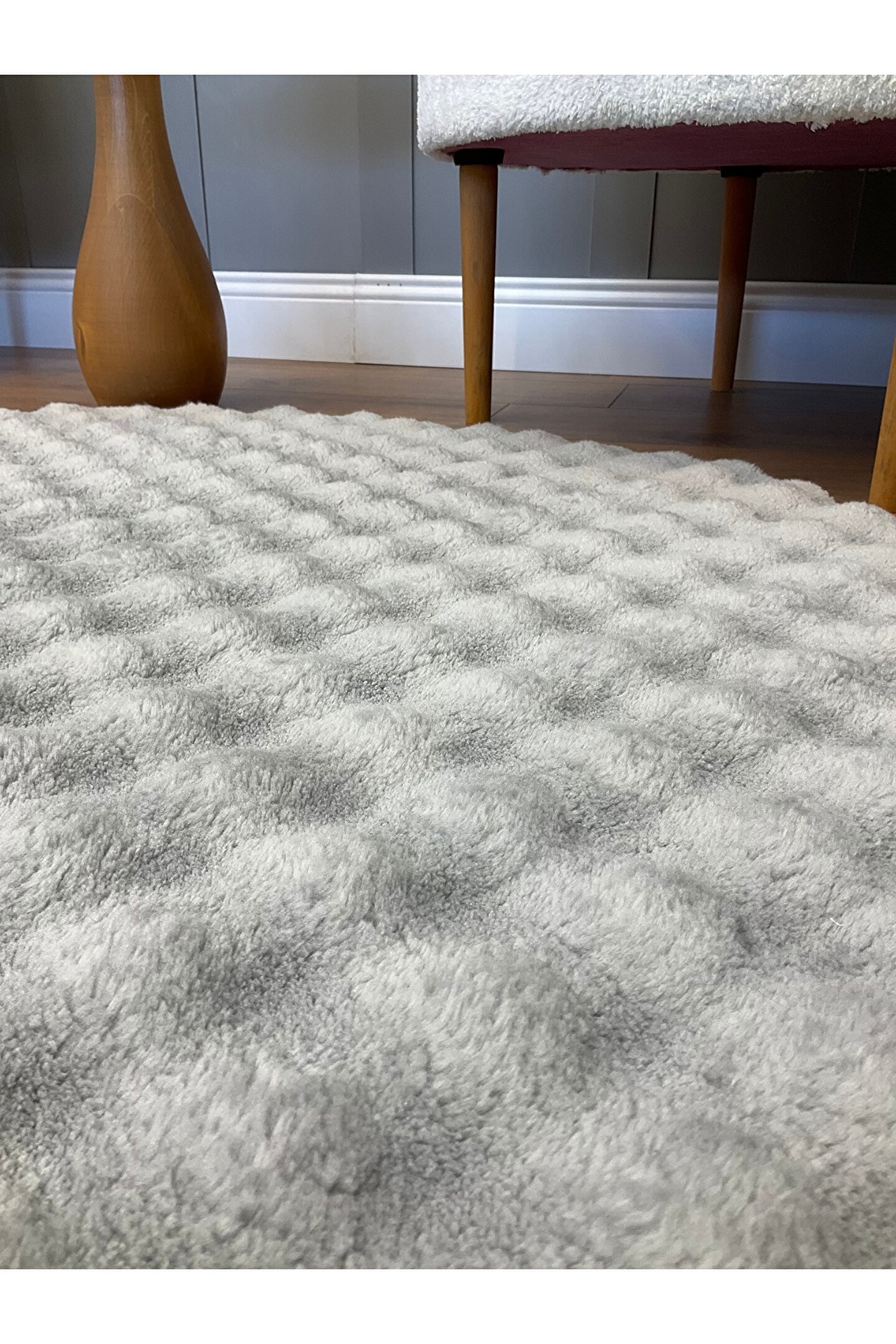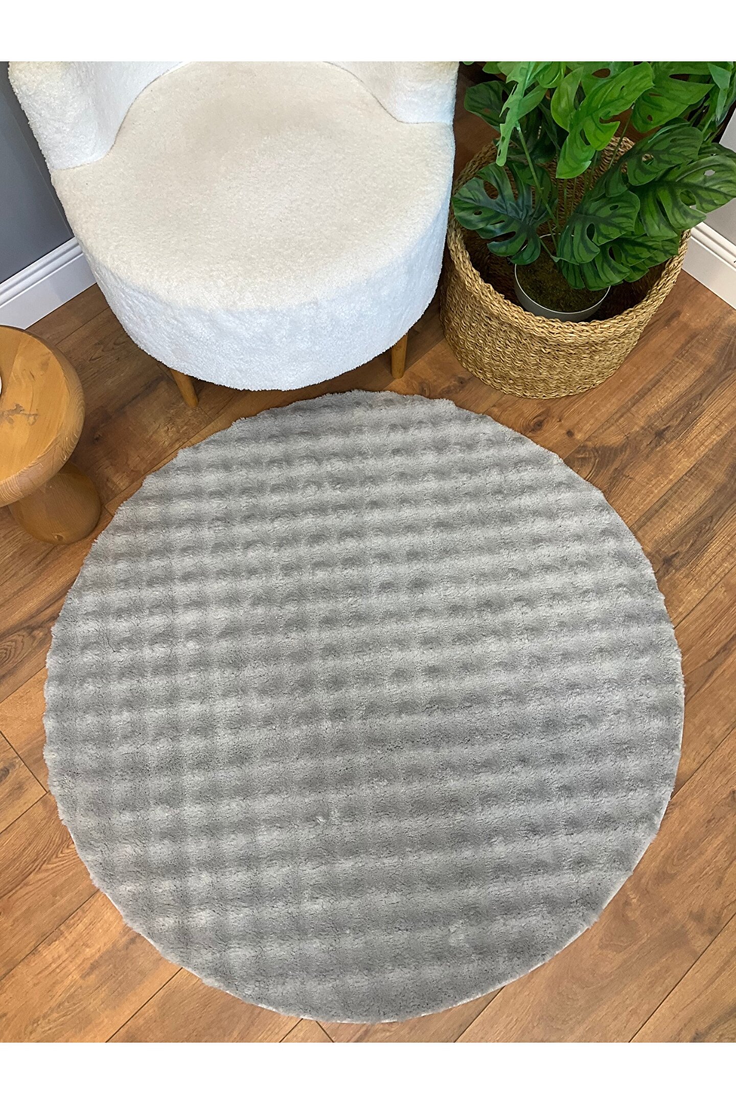 SARAZ HALI Bubble Tavşan Yuvarlak Post Yumuşacık Tavşan Tüyü Kaymaz Yıkanabilir Gri