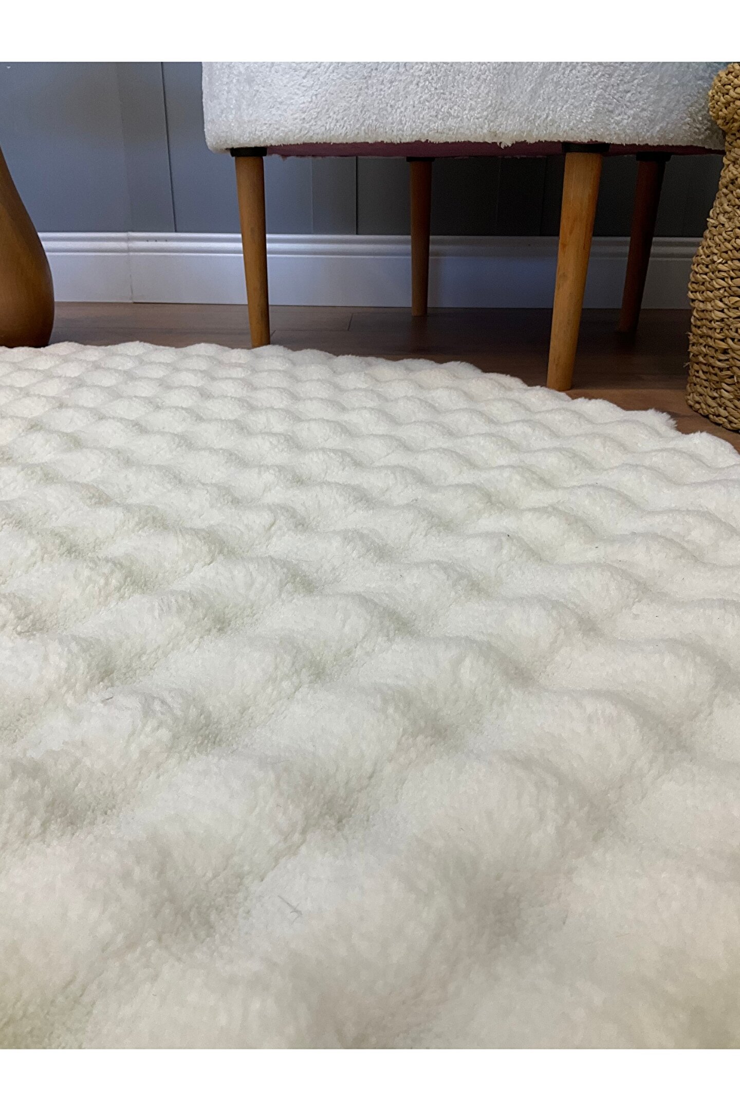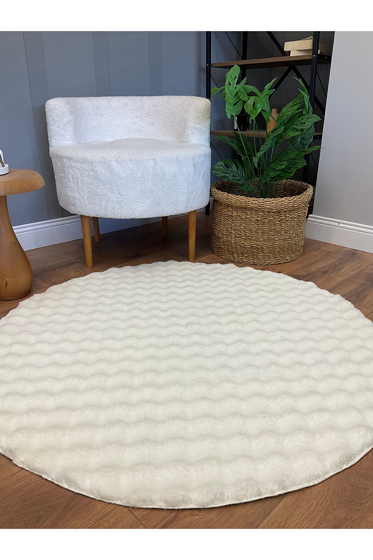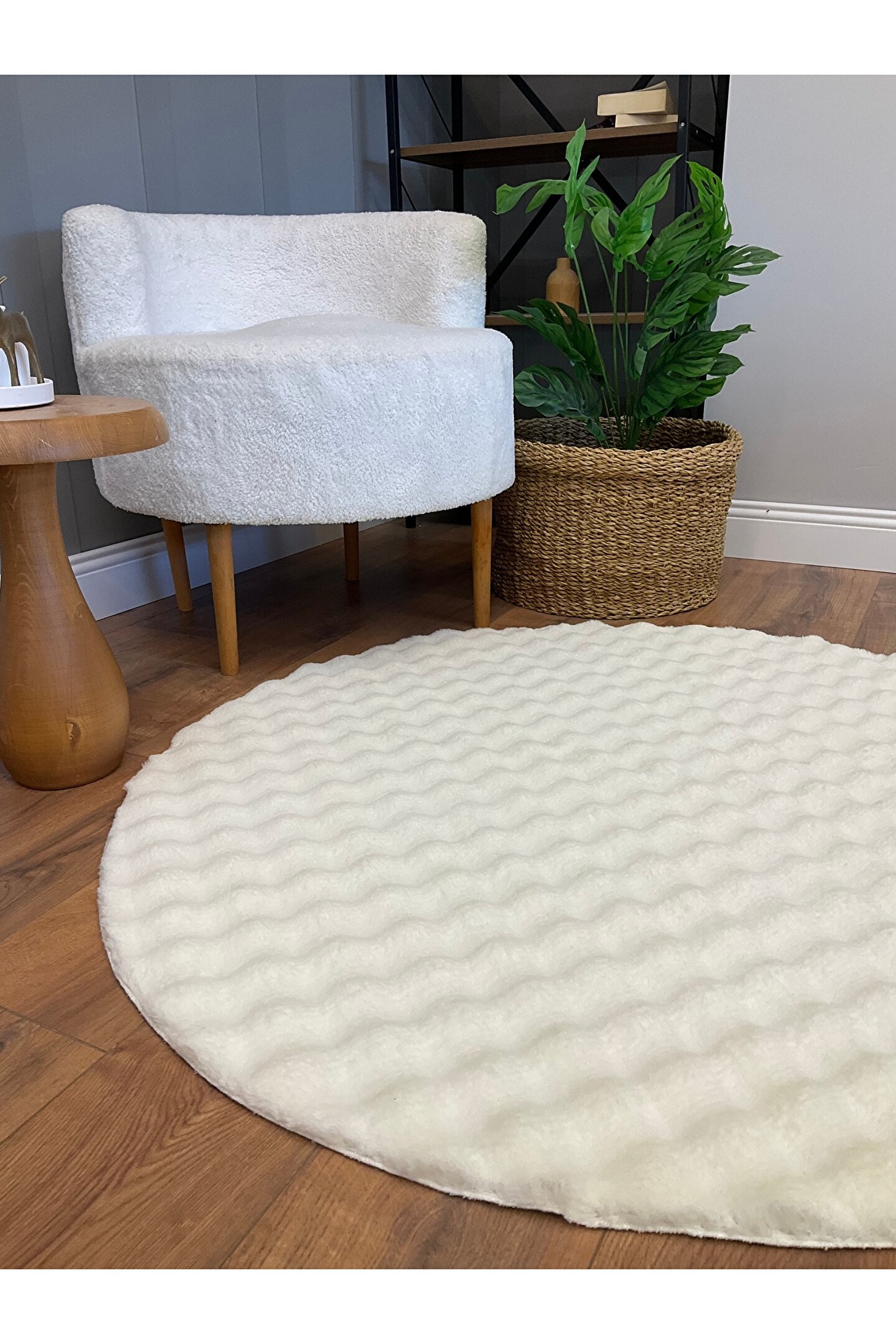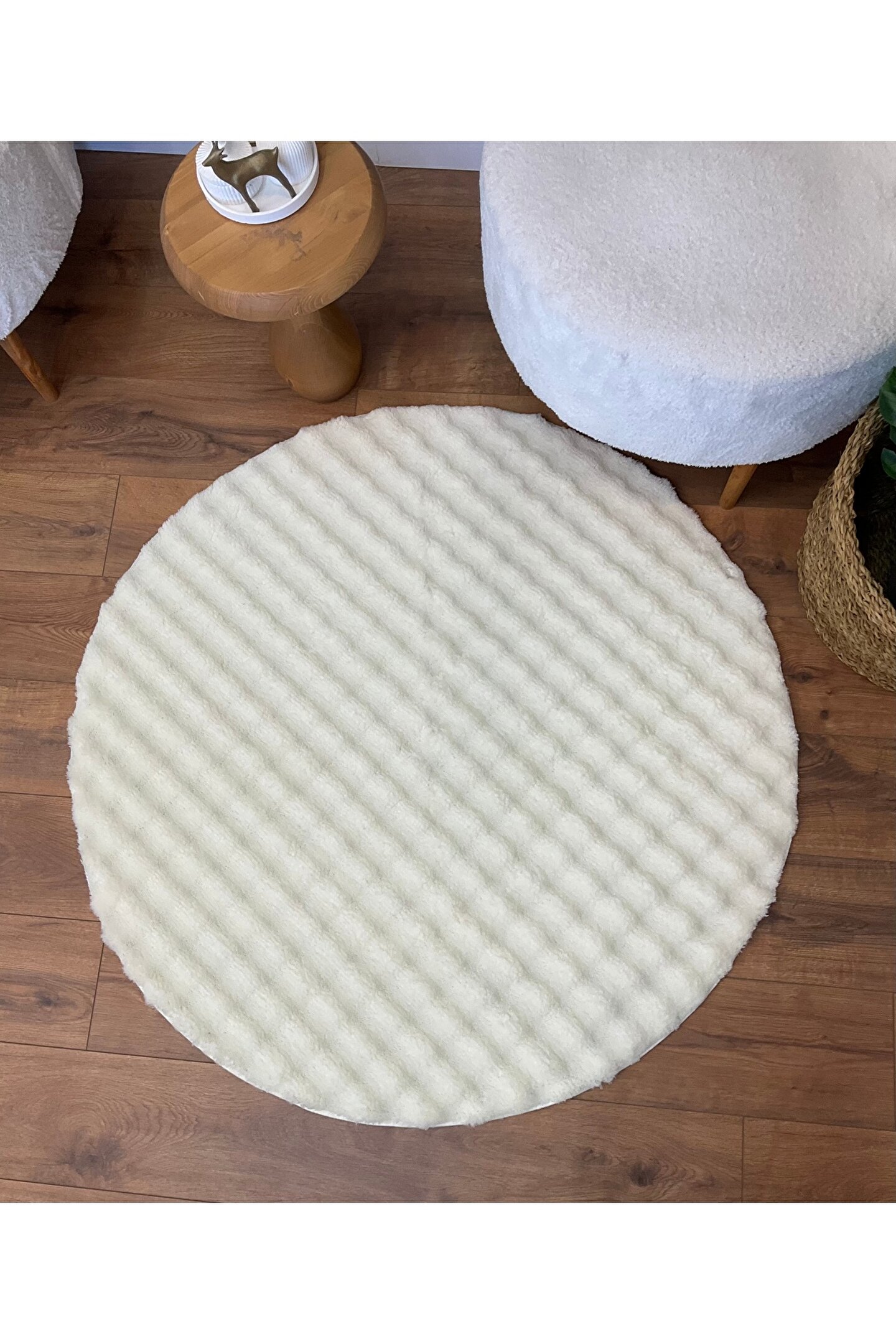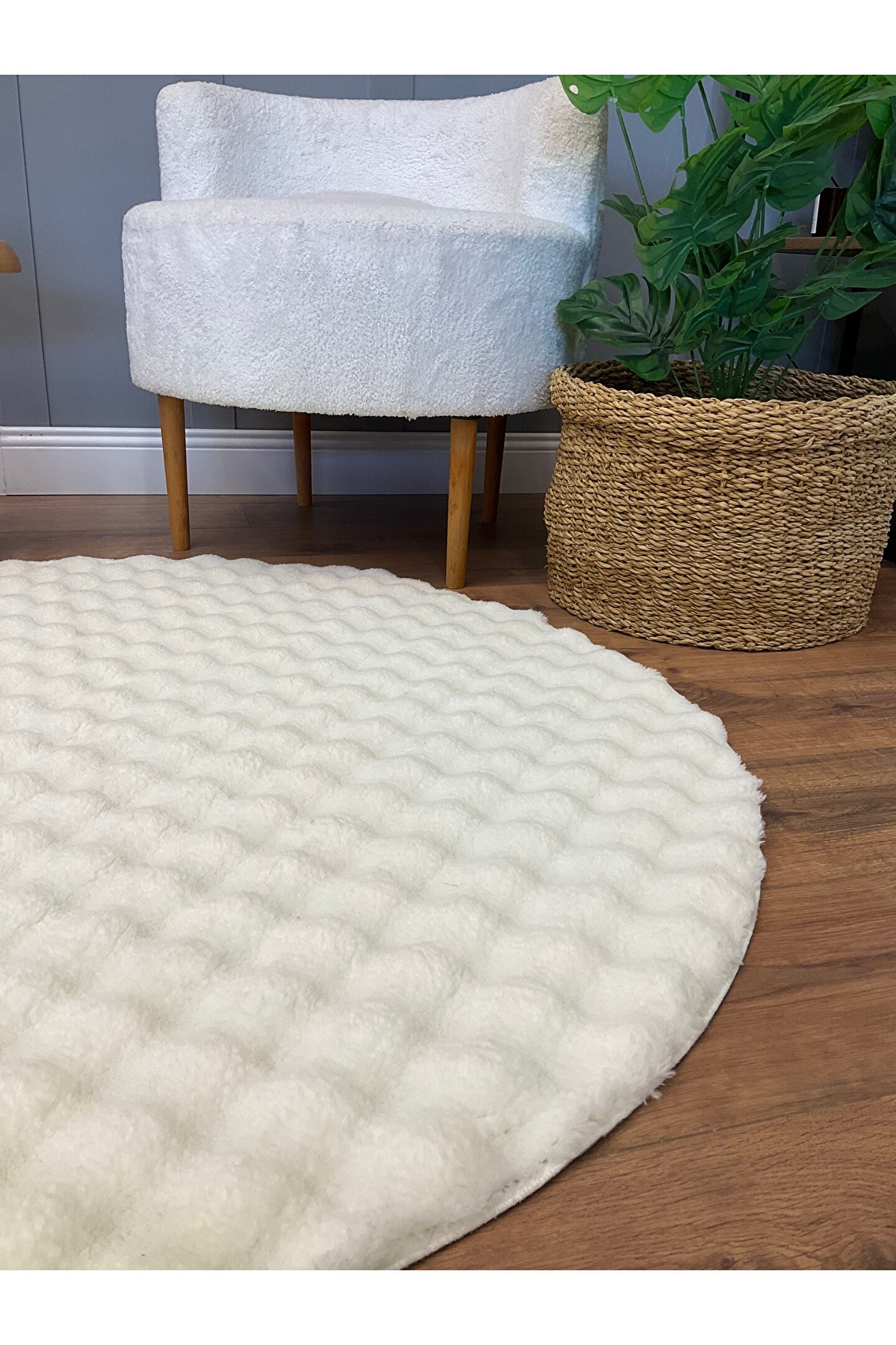 SARAZ HALI Bubble Tavşan Yuvarlak Post Yumuşacık Tavşan Tüyü Kaymaz Yıkanabilir Krem