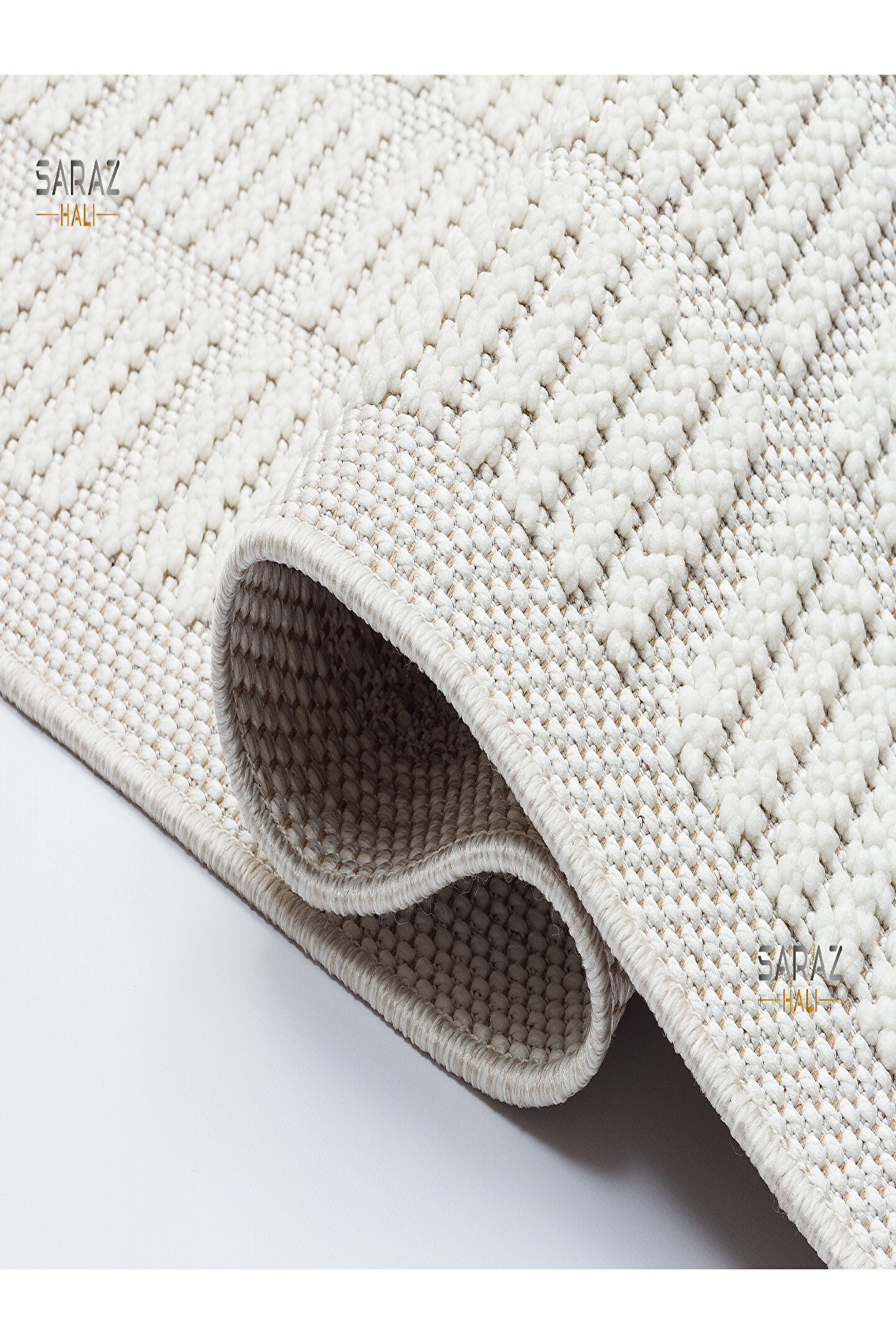 SARAZ HALI Bukle Beyaz Yumuşak Dokulu Halı Kilim Salon Mutfak Koridor Kesme Yolluk Dokuma Makine Halısı 11880