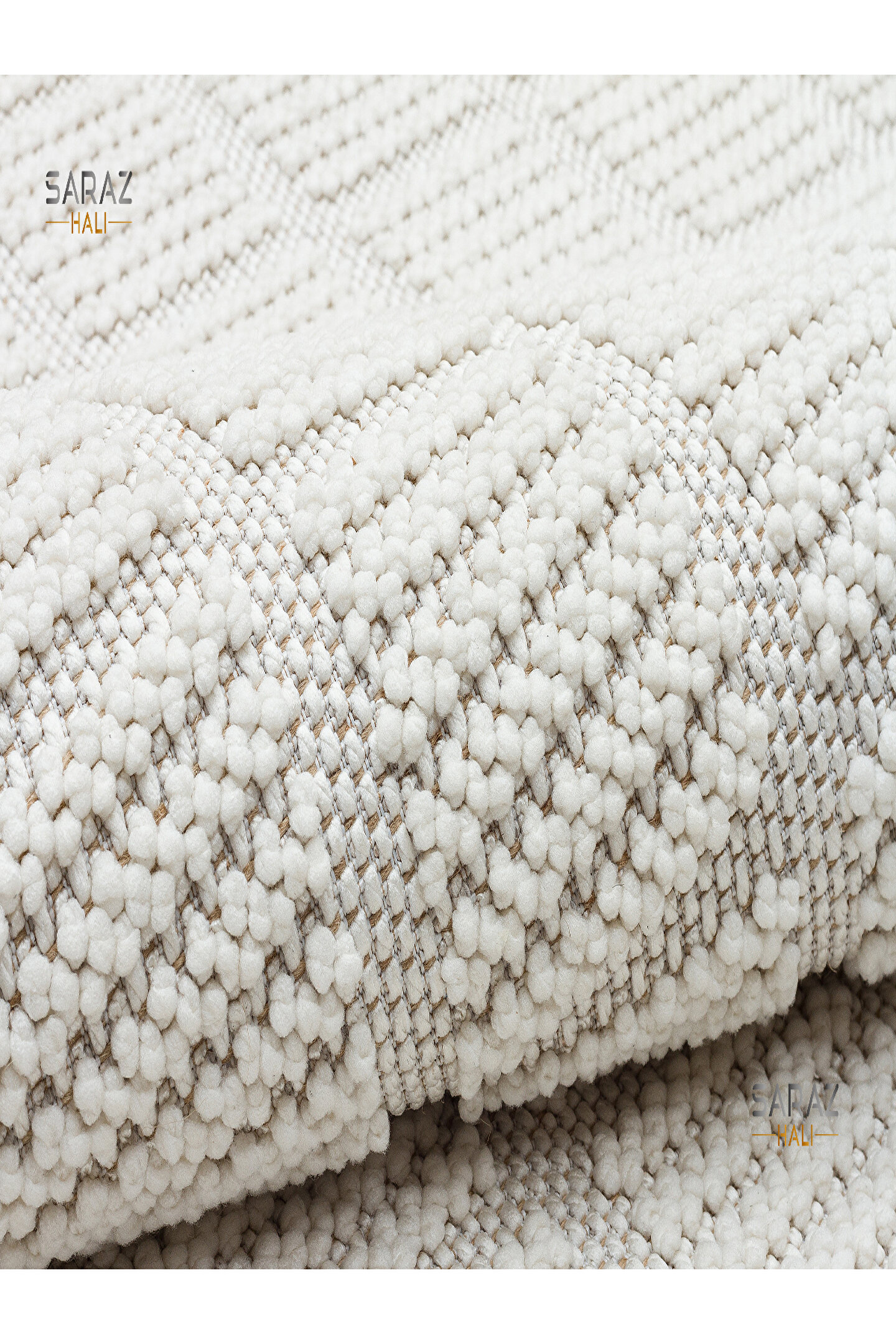 SARAZ HALI Bukle Beyaz Yumuşak Dokulu Halı Kilim Salon Mutfak Koridor Kesme Yolluk Dokuma Makine Halısı 11880