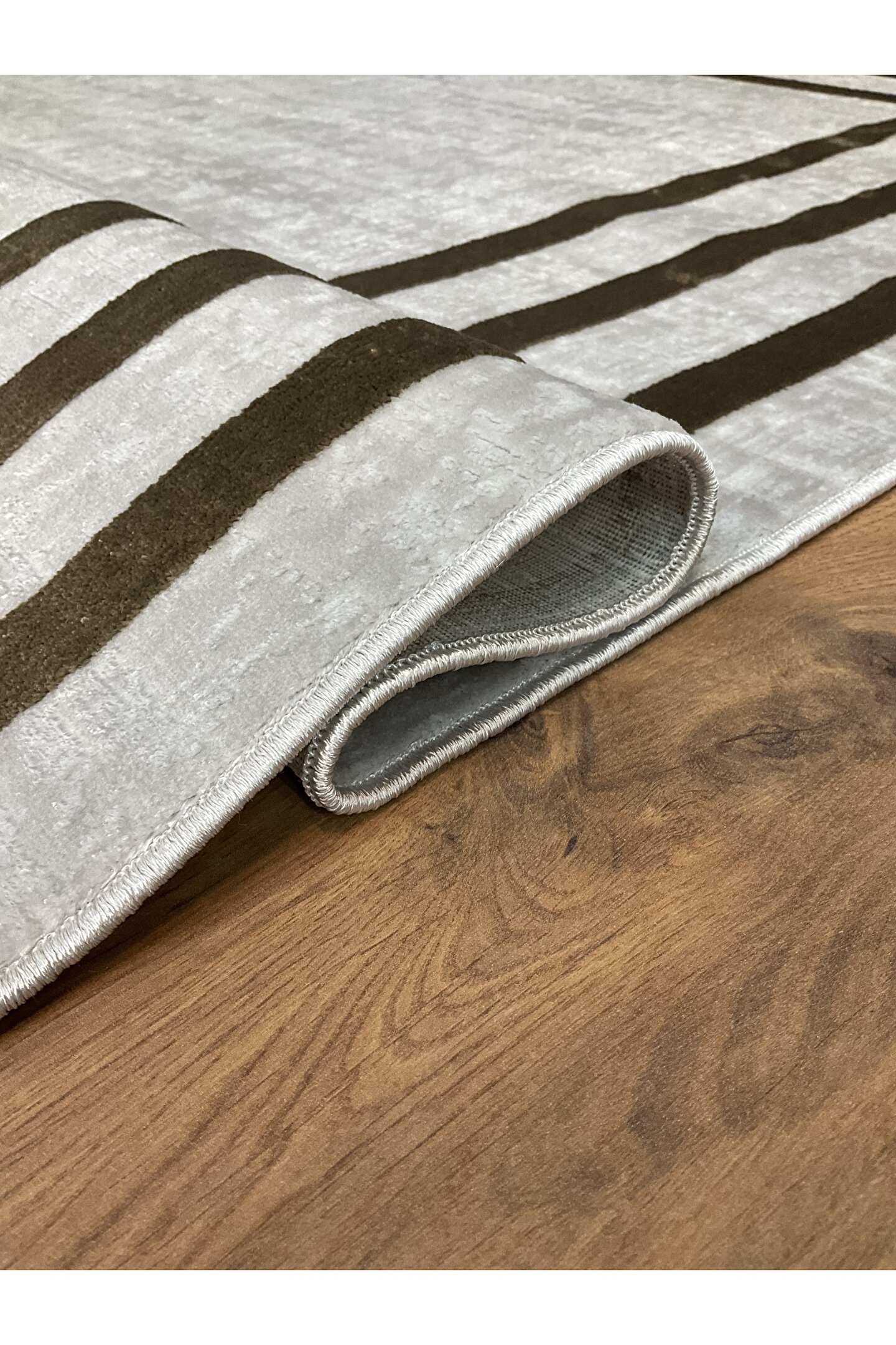 SARAZ HALI Çerçeve Model Bambu Yıkanabilir Parlak Halı Kahve Çizgi