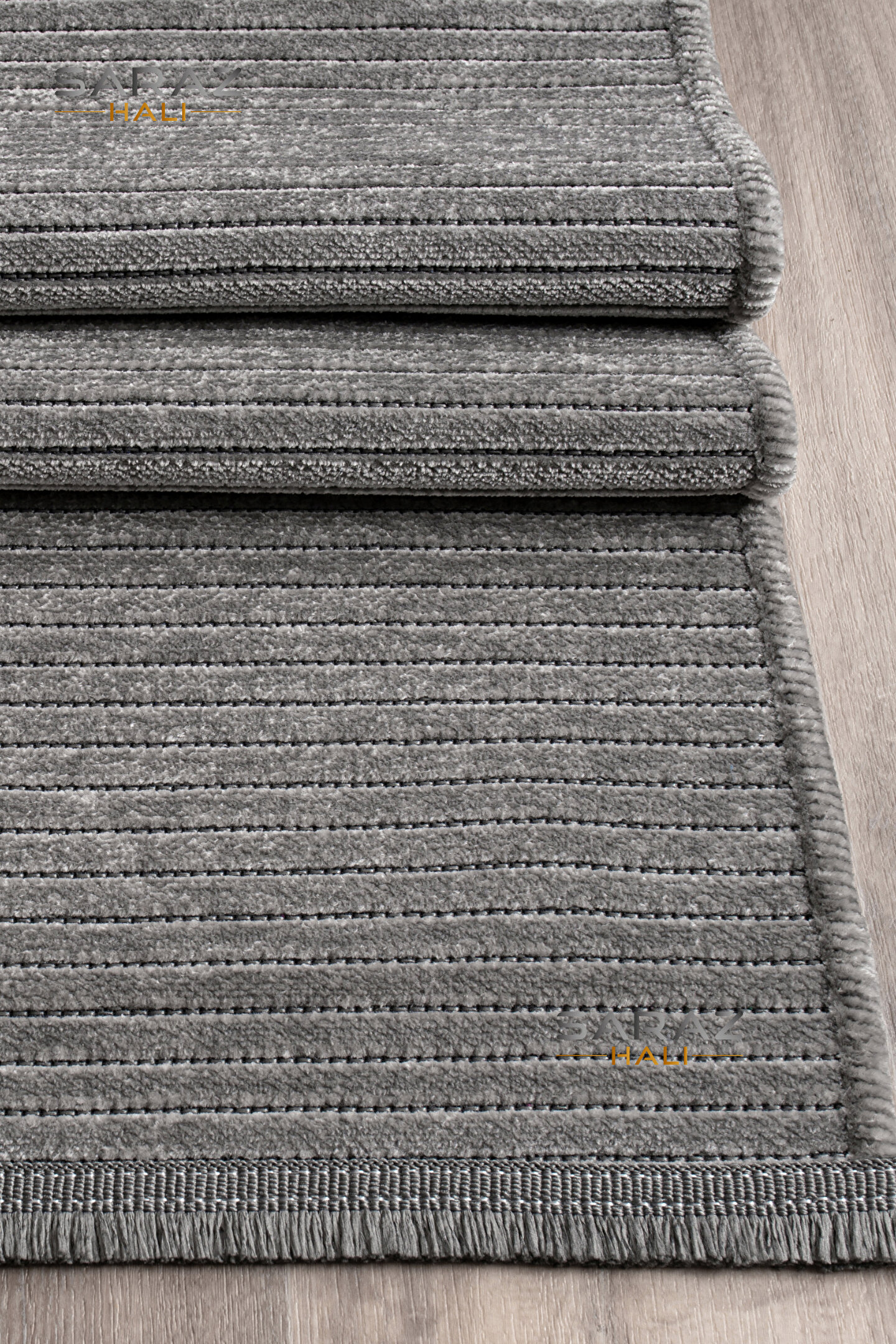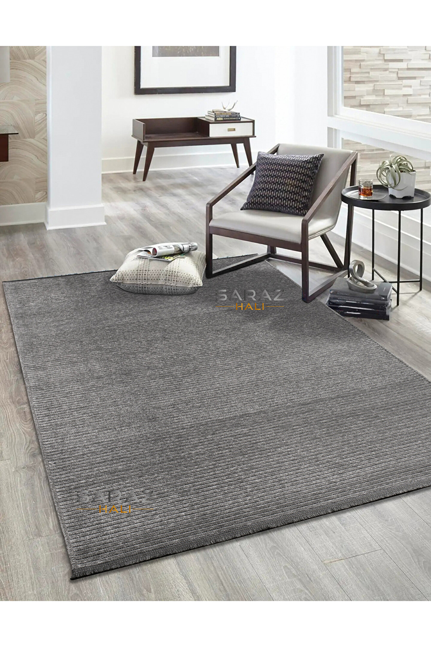 SARAZ HALI Dizayn Şönil Dokuma Kayma Yapmaz Makinede Yıkanabilir Leke Tutmaz Kesme Bohem Kilim Gri
