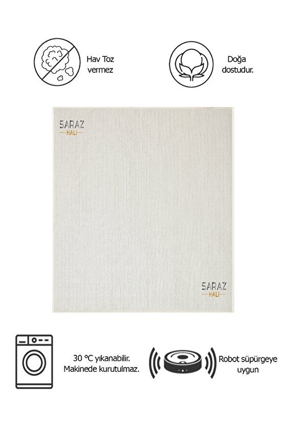 SARAZ HALI Dizayn Şönil Dokuma Kayma Yapmaz Makinede Yıkanabilir Leke Tutmaz Kesme Bohem Kilim Krem
