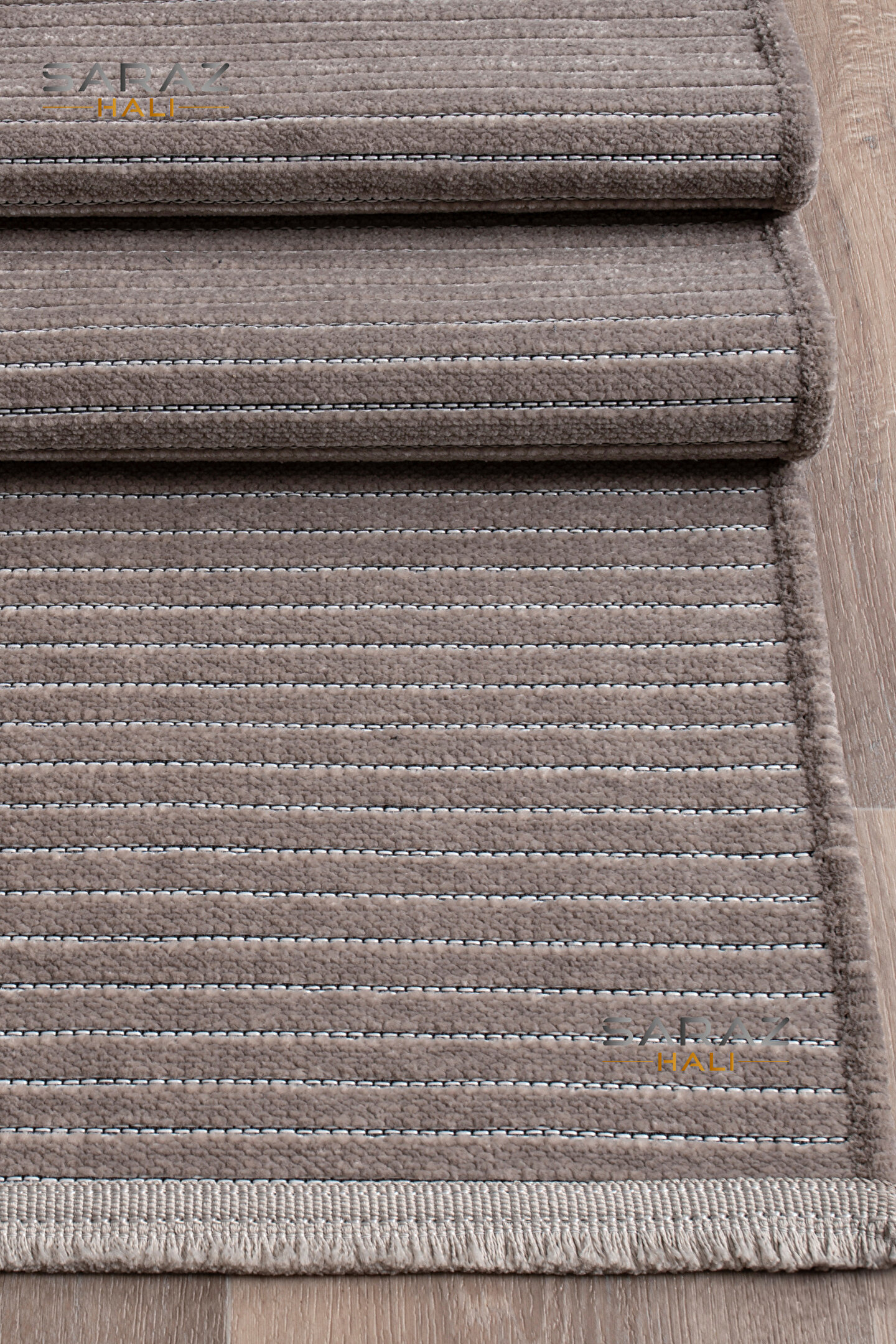 SARAZ HALI Dizayn Şönil Dokuma Kayma Yapmaz Makinede Yıkanabilir Leke Tutmaz Kesme Bohem Kilim Vizon