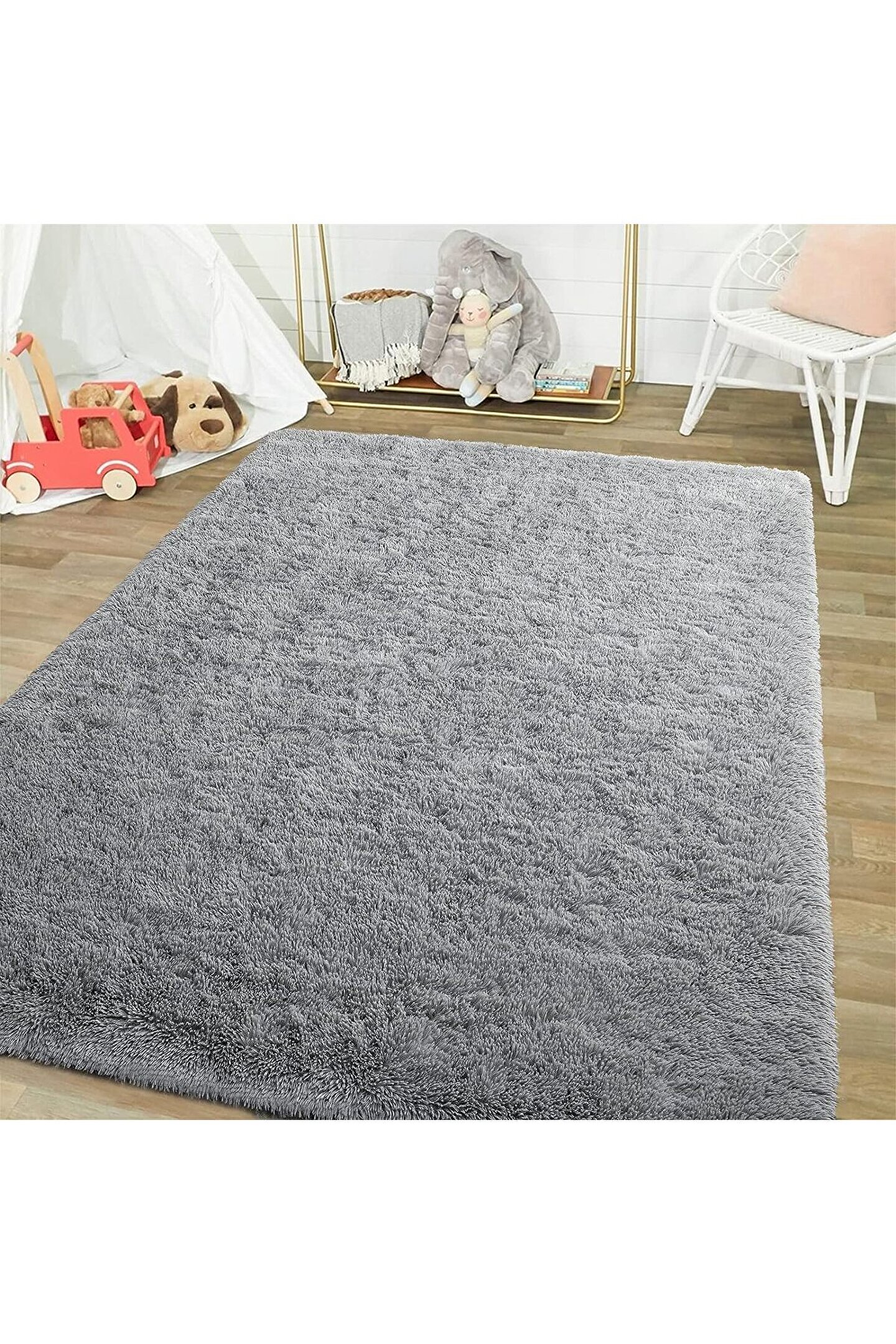 SARAZ HALI Gri Yıkanabilir Yolluk Kaymaz Taban Uzun Tüylü Yumuşak Halı Kaymaz Tüylenmez