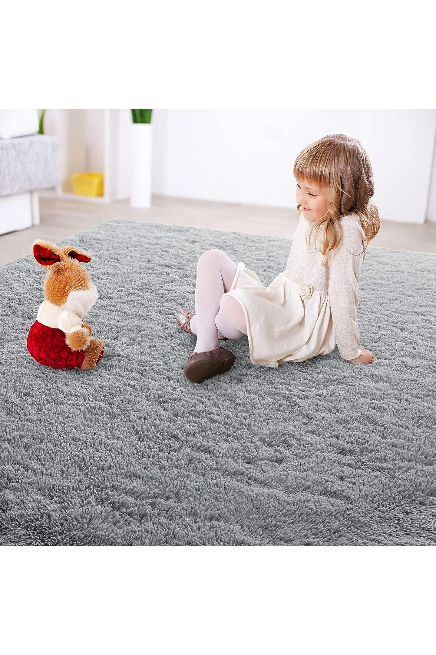 SARAZ HALI Gri Yıkanabilir Yolluk Kaymaz Taban Uzun Tüylü Yumuşak Halı Kaymaz Tüylenmez