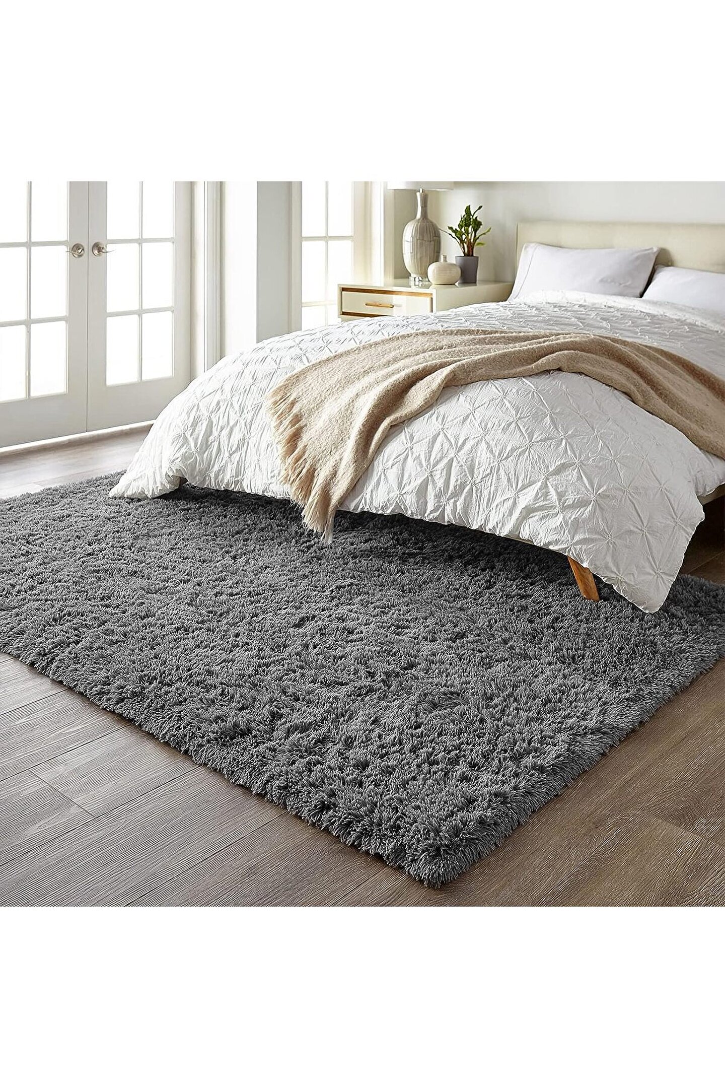SARAZ HALI Gri Yıkanabilir Yolluk Kaymaz Taban Uzun Tüylü Yumuşak Halı Kaymaz Tüylenmez