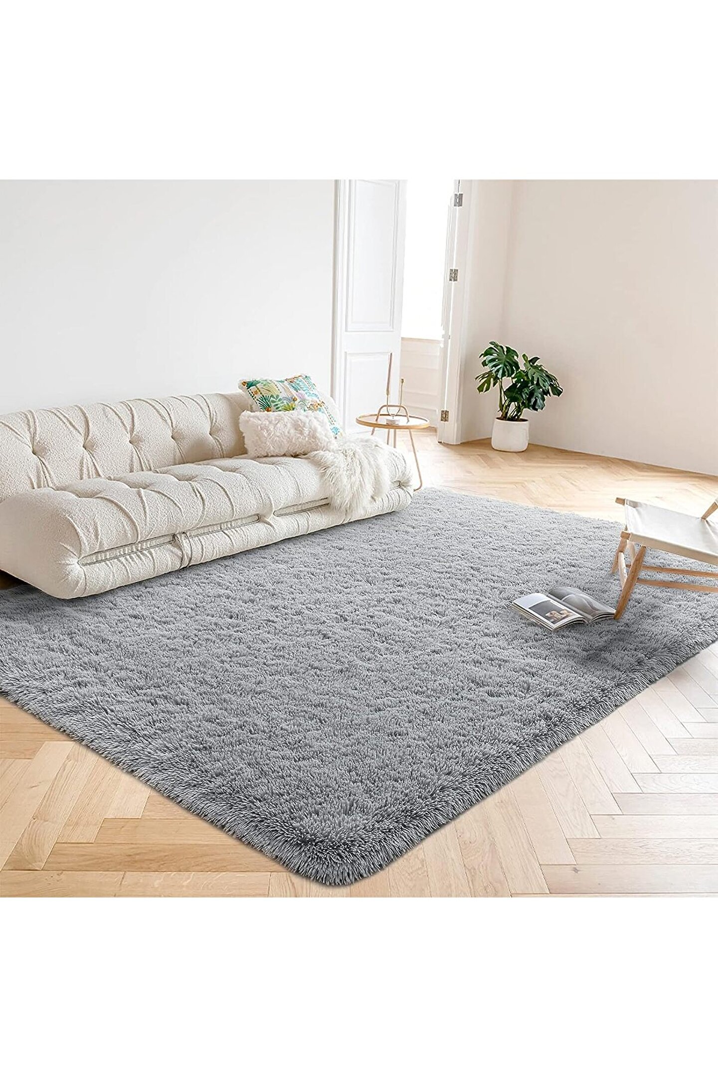 SARAZ HALI Gri Yıkanabilir Yolluk Kaymaz Taban Uzun Tüylü Yumuşak Halı Kaymaz Tüylenmez