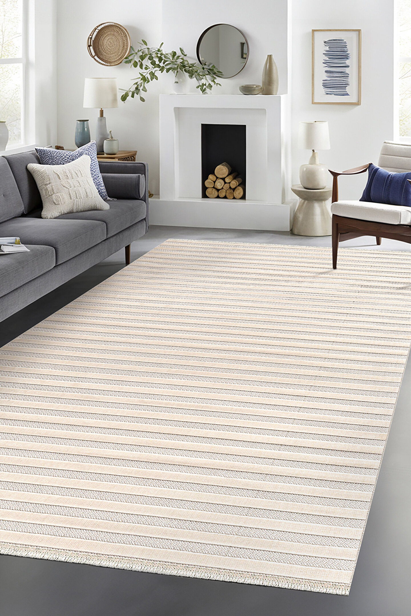SARAZ HALI Kadife Bambu Dokuma Modern Kaymaz Salon Halısı Mutfak Halısı Koridor Halısı Yolluk Çizgi Beyaz