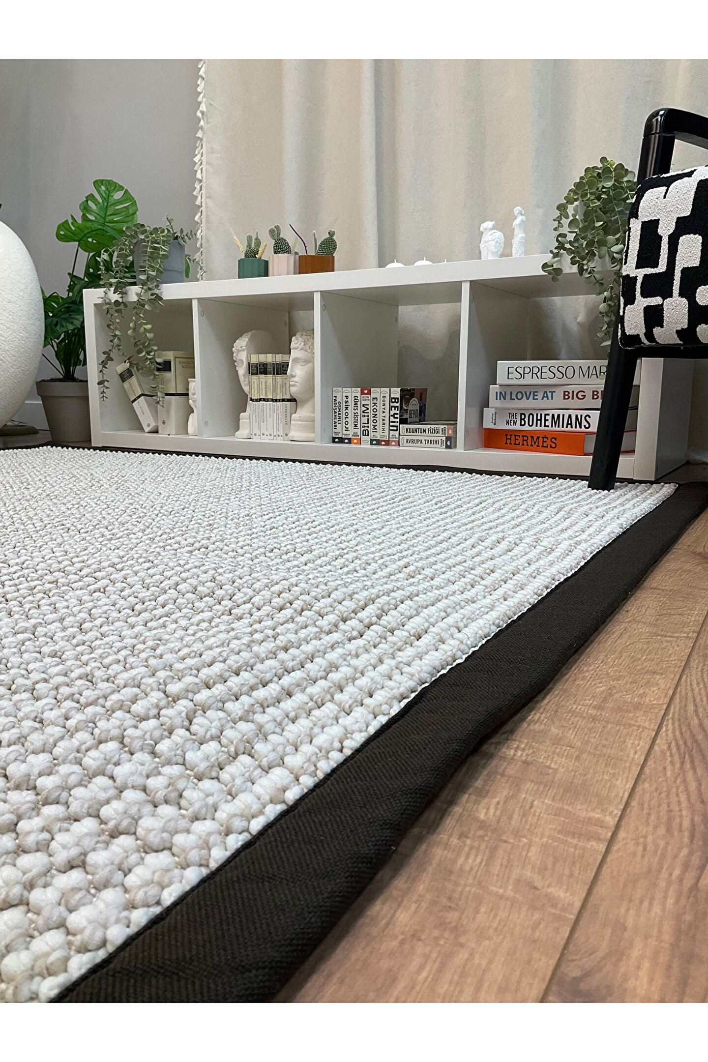 "Gerçek DOKUMA halısıdır ve Gerçek Kumaş Bordür Mevcuttur Hav, tüy çıkartmaz.; Toz yapmaz.; Deformasyona uğramaz.; Keçeleşmez Ekstra yumuşak 1.sınıf polyester ipliklerle dokunan bu halımız, basıldığında yumuşaklık hissi verir ve ayakaltı konforunuzu sağlar.; Bukle örgü sistemiyle dokunan bu halımız, doğal 3 boyutlu görünüm de sağlamaktadır.; Ürünümüzün kenarlarında yer alan kumaş bordür detayı, halınıza hem şık bir görünüm hem de ekstra dayanıklılık kazandırır.; Kullanım ve Bakım Talimatı Temizliği çok kolaydır.; Robot süpürge kullanımına uygundur.; Elektrik süpürgesi ile de kolayca süpürülebilir.; Rutin temizlik dışında herhangi bir lekelenme ya da sıvısal kirlenmeler için halı leke çıkartıcısı kullanınız.; Çamaşır makinesinde yıkanmaz.; Sert yüzey temizleyicileri, çamaşır suyu, tuz ruhu gibi maddelerden uzak tutulmalıdır, bu tür maddeler halı dokusuna zarar verip çürümeye neden olur.; Çok fazla kirletildiği zaman, profesyonel temizleme şirketlerine başvuru yapınız.; Yüksek basınçlı (tazyikli) su ile yıkanmamasını rica etmekteyiz.; Ekstra yumuşak bir halı olduğu için, bu hâliyle senelerce kullanmanızı dilemekteyiz.; Halınızın kullanılmadığı zamanda, katlamadan, rulo halinde rutubetin olmadığı bir yerde muhafaza etmenizi öneririz.; Evinize Uygun Halı Seçenekleri: Salon Halısından Yatak Odası Halısına Evinizin dekorasyonunu tamamlayan en önemli unsurlardan biri halıdır.; Doğru halı seçimi, mekanın atmosferini ve konforunu büyük ölçüde etkiler.; Bu yazıda, salon halısı, peluş halı, yuvarlak halı, İskandinav halı, yatak odası halısı gibi farklı seçenekleri ve trend halıları inceleyeceğiz.; Salon Halısı Seçimi: Salon, evin en çok vakit geçirilen alanlarından biridir.; Bu nedenle, salon halısı seçerken hem estetik hem de dayanıklılık önemlidir.; Modern halılar arasında gri halı, krem halı ve bej halı gibi nötr tonlar popülerdir.; Ayrıca, yuvarlak halılar ve İskandinav halılar da minimalist dekorasyon sevenler için idealdir.; Yatak Odası Halısı: Yatak odası, dinlenme ve rahatlama alanıdır.; Peluş halılar, yumuşak dokusuyla yatak odası halısı olarak mükemmel bir seçimdir.; Beyaz halı veya bej tonları, odanıza ferahlık katarken, bohem halılar özgün bir tarz yaratmanıza yardımcı olur.; Mutfak ve Koridor Halıları: Mutfak halısı ve koridor halısı seçerken, kolay temizlenebilir ve dayanıklı malzemeler tercih edilmelidir.; Jut halı ve sisal halı, doğal lifleri sayesinde hem şık hem de pratiktir.; Kesme halılar ise dar alanlara özel ölçülerde uyum sağlar.; Çocuk Odası Halıları: Çocuk odası halısı seçerken, renkli ve eğlenceli desenlerin yanı sıra, hijyenik ve yıkanabilir özellikte olması önemlidir.; Dokuma halılar, dayanıklılıklarıyla çocuk odaları için idealdir.; Trend ve Modern Halılar: Son dönemde, halı kilim kombinasyonları ve oturma odası halısı olarak kullanılan farklı dokular popülerlik kazanmıştır.; Hol halısı ve diğer alanlar için modern halılar seçerken, mevcut dekorasyon stilinizi ve renk paletinizi göz önünde bulundurmanız önerilir.; "