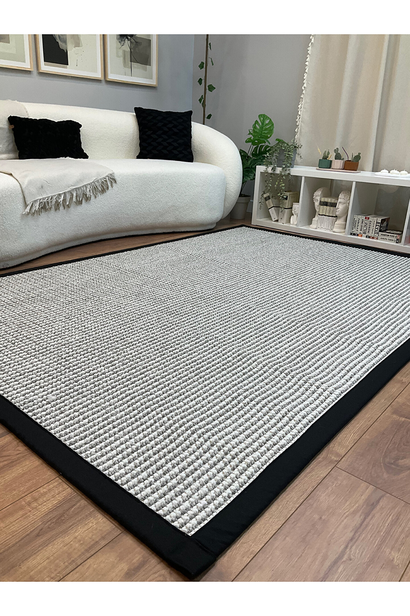 SARAZ HALI Kumaş Bordür Gri Bukle Siyah Bordür Halı Salon Koridor Mutfak Çocuk Odası Halısı Kilim S270