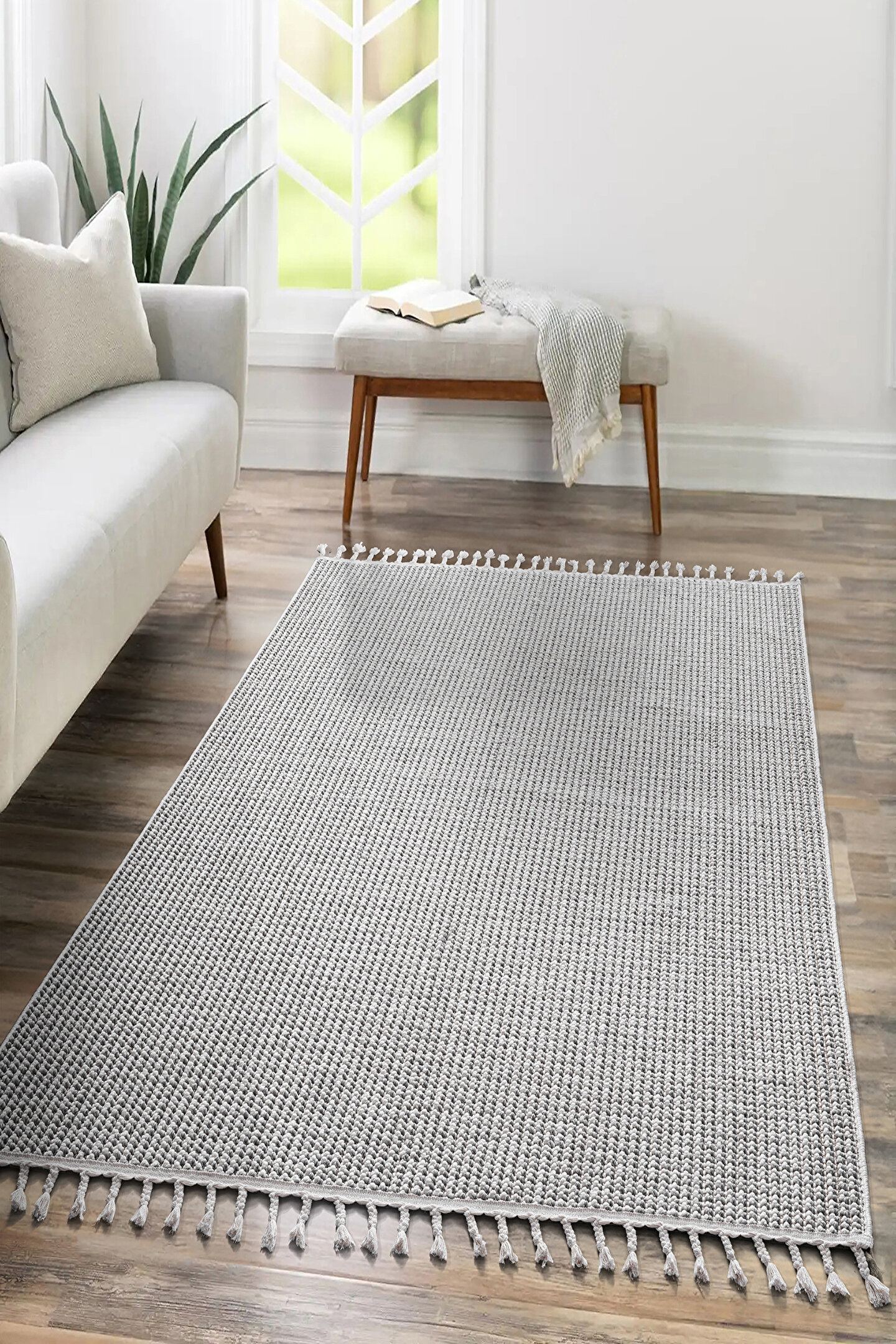 SARAZ HALI Mumbai 256 Gri - Beyaz Yumuşak Dokulu Halı Kilim Salon Mutfak Koridor Yolluk Dokuma Makine Halısı