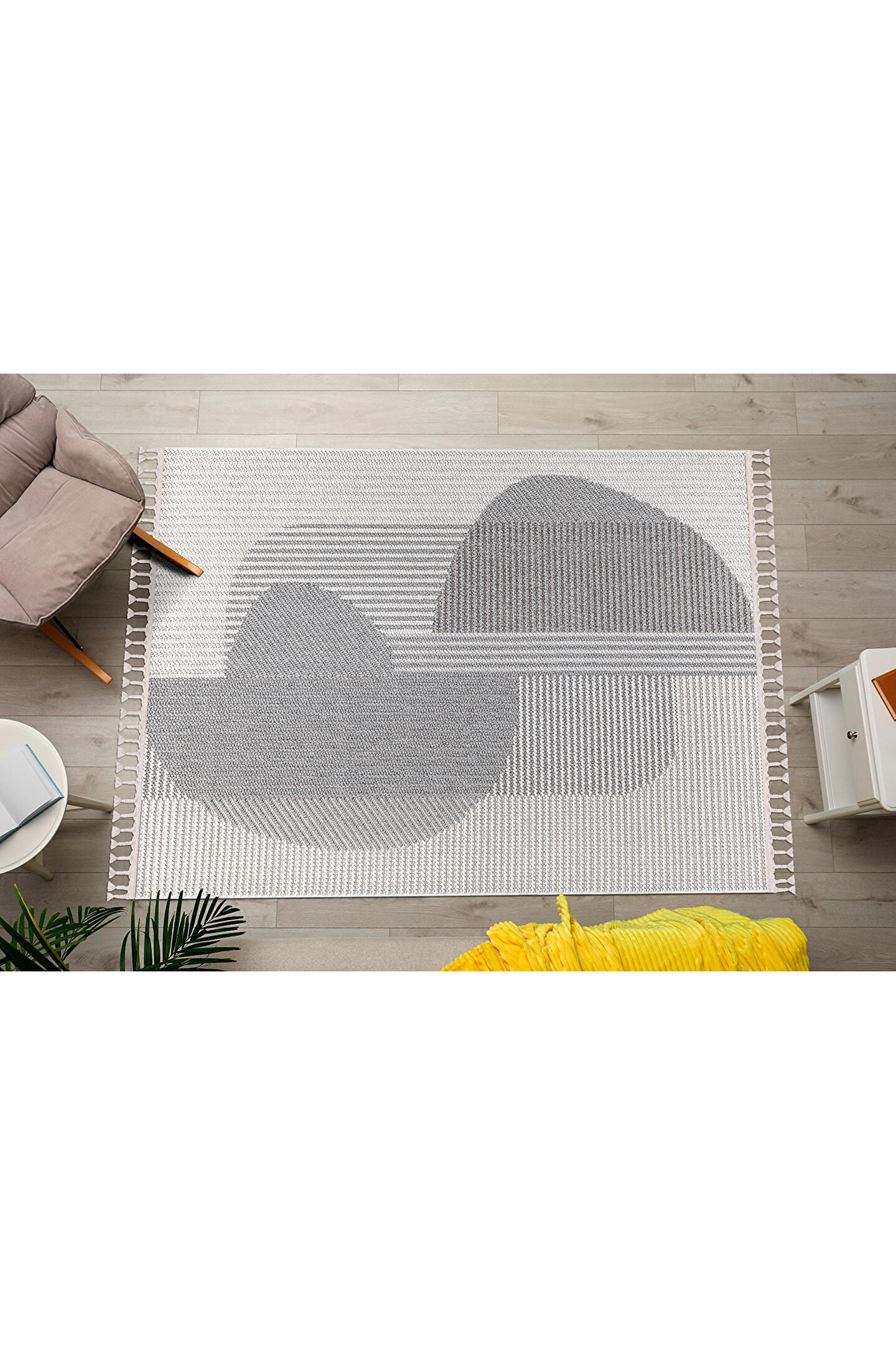 SARAZ HALI Mumbai 321 Gri - Beyaz Yumuşak Dokulu Halı Kilim Salon Mutfak Koridor Yolluk Dokuma Makine Halısı