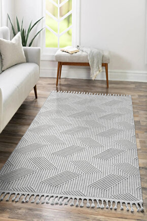 SARAZ HALI Mumbai 434 Gri Yumuşak Dokulu Halı Kilim Salon Mutfak Koridor Yolluk Dokuma Makine Halısı