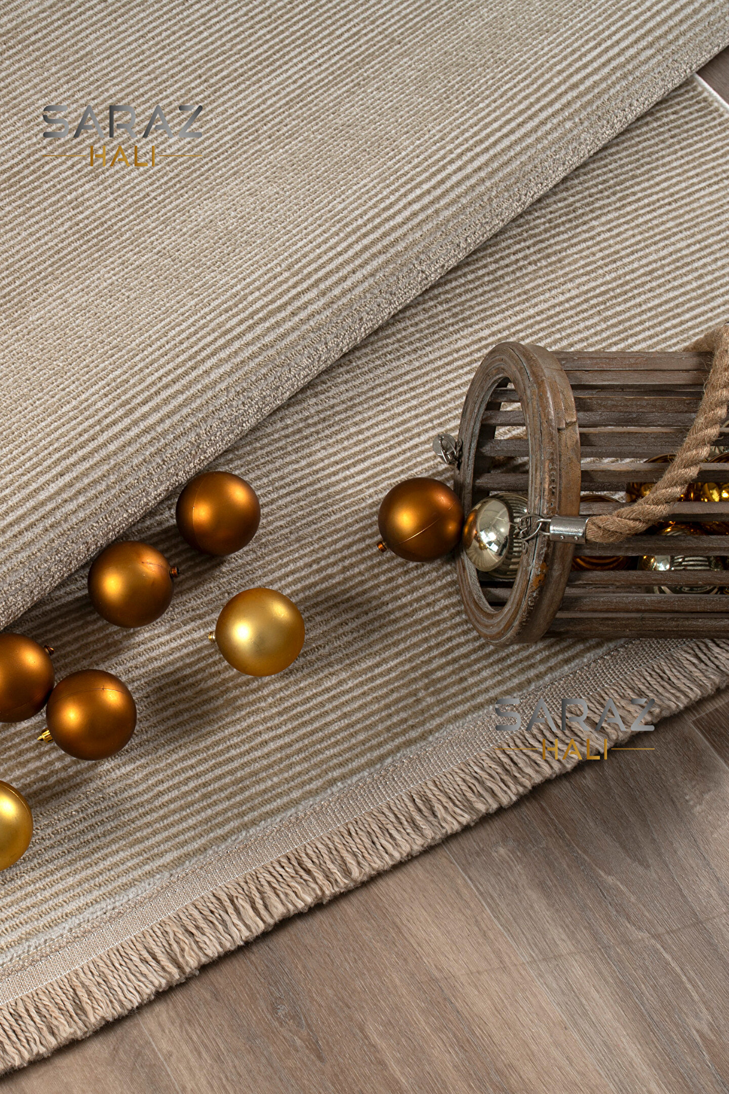 SARAZ HALI Parma Düz Vizon Model Dokuma Halı Kilim Yolluk Salon Halısı Modern Dokuma
