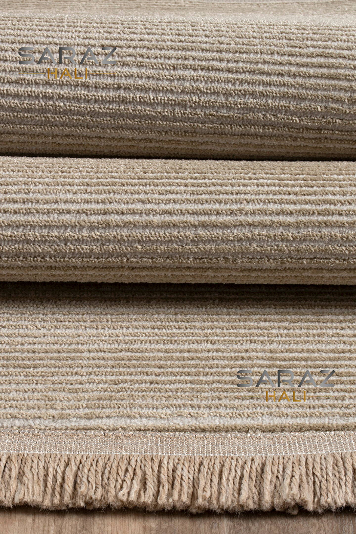 SARAZ HALI Parma Düz Vizon Model Dokuma Halı Kilim Yolluk Salon Halısı Modern Dokuma