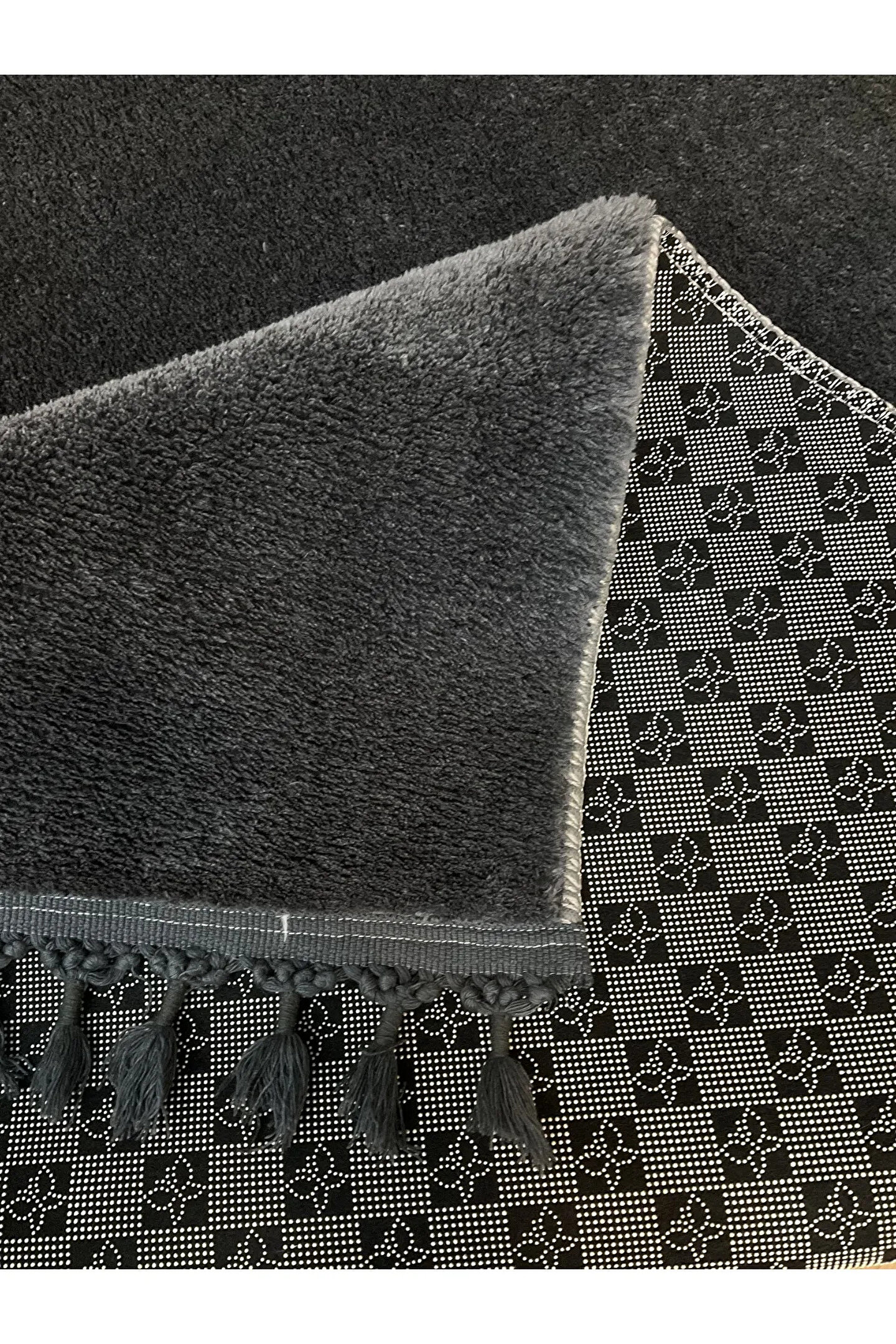 SARAZ HALI Puffy Antrasit Oval Örgü Saçaklı Peluş Yumuşacık Yıkanabilir Kaymaz Taban Halı Salon Oturma Odası