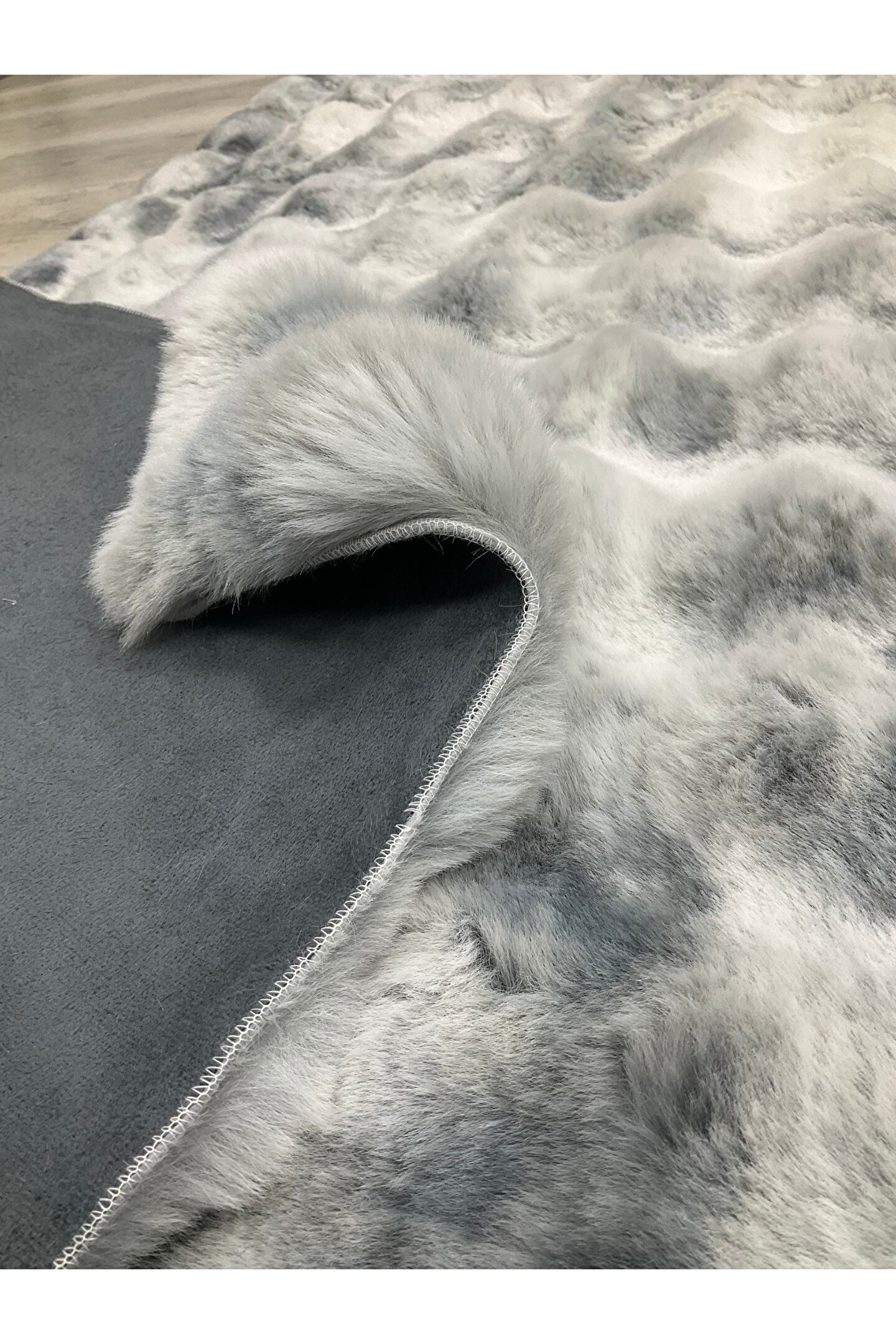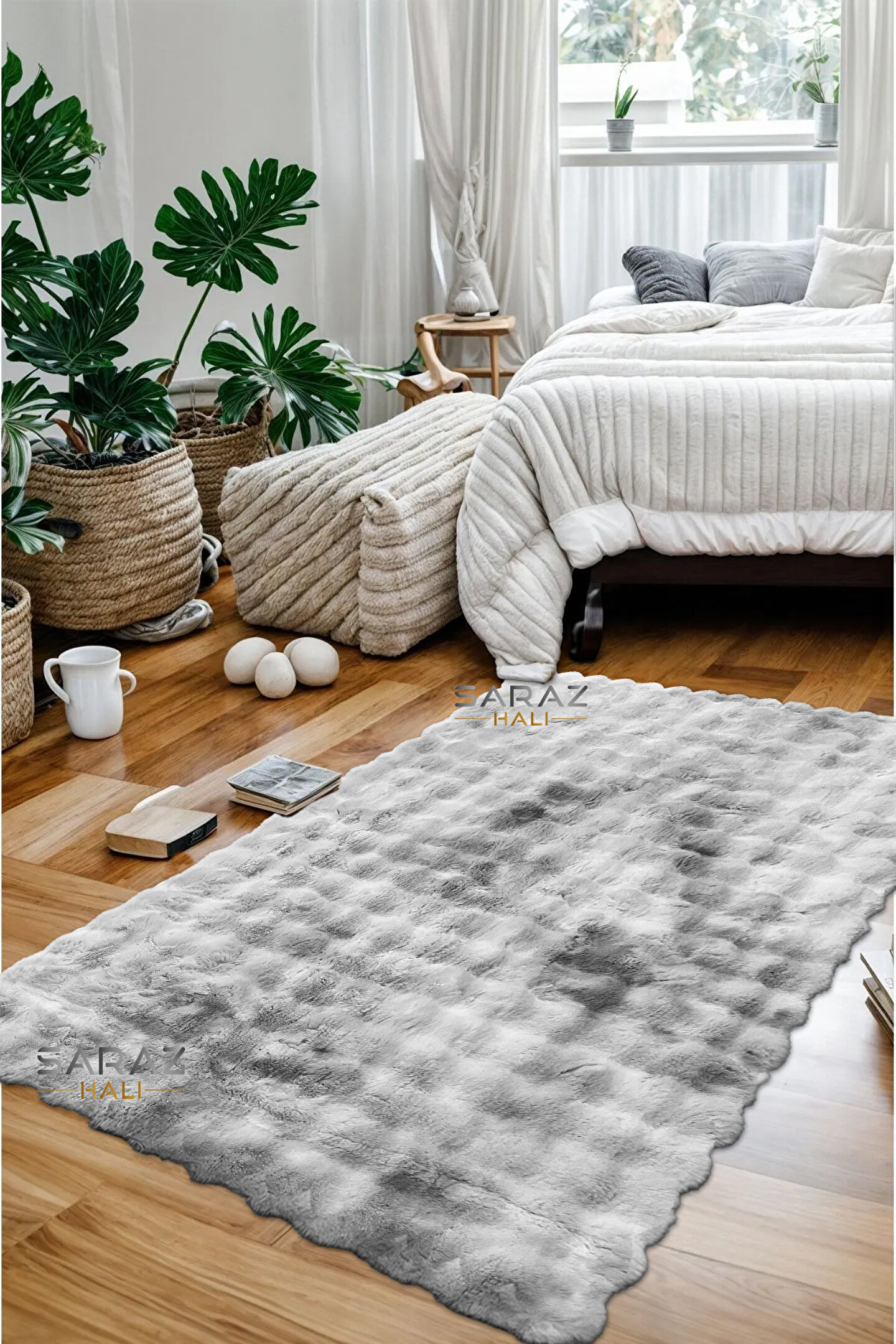 SARAZ HALI Renkli Bubble Tavşan Tüyü İthal Kaymaz Yumuşak Tüylü Tona Ton Gri