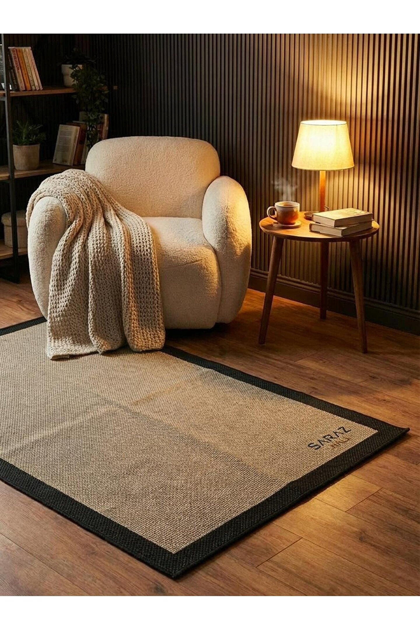 SARAZ HALI SİSAL Bordürlü Jut Hasır Halı Kahve Siyah 9716