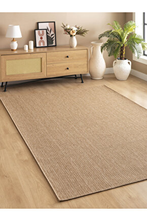 SARAZ HALI Sisal Jut Hasır Model Tek Renk Dokuma Yıkanabilir Toz Vermez Halı Kahve