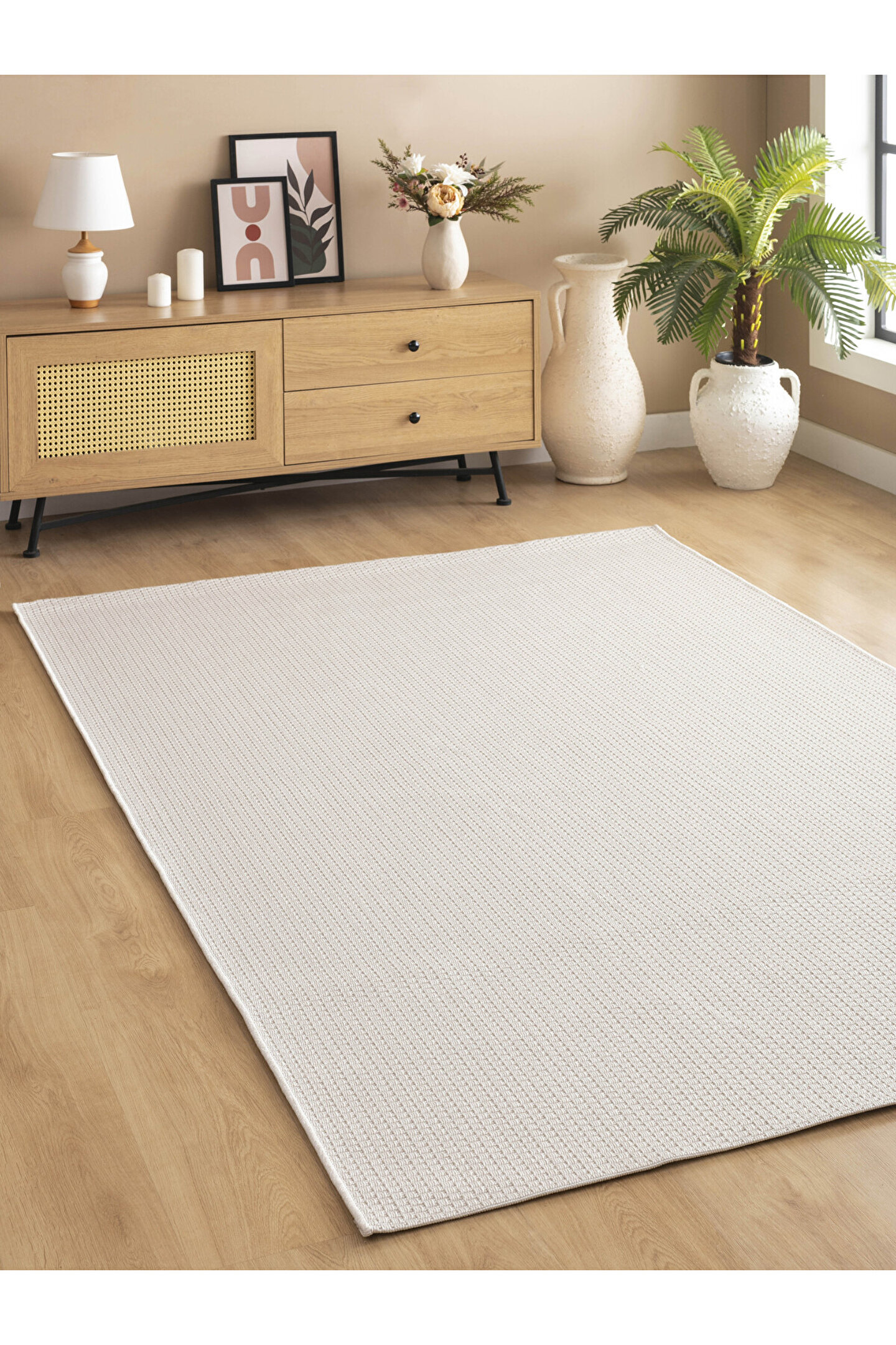 SARAZ HALI Sisal Jut Hasır Model Tek Renk Dokuma Yıkanabilir Toz Vermez Halı Krem
