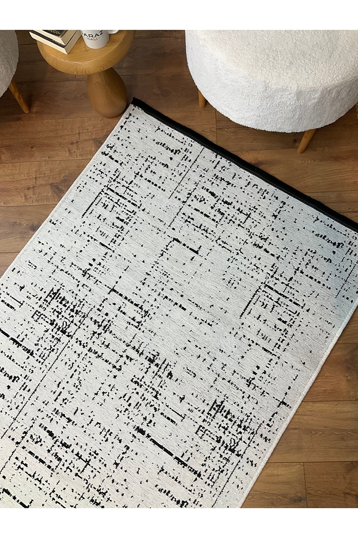 SARAZ HALI Şönil Dokuma Kayma Yapmaz Makinede Yıkanabilir Leke Tutmaz Kesme Bohem Kilim Krem 2
