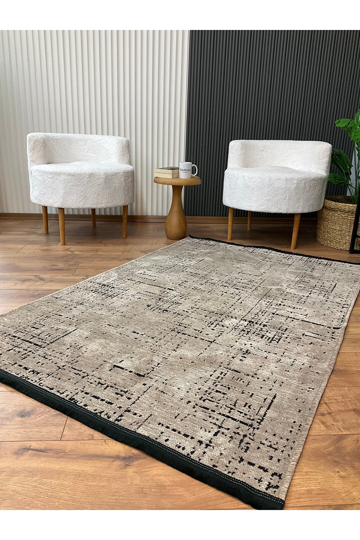 SARAZ HALI Şönil Dokuma Kayma Yapmaz Makinede Yıkanabilir Leke Tutmaz Kesme Bohem Kilim Vizon 2