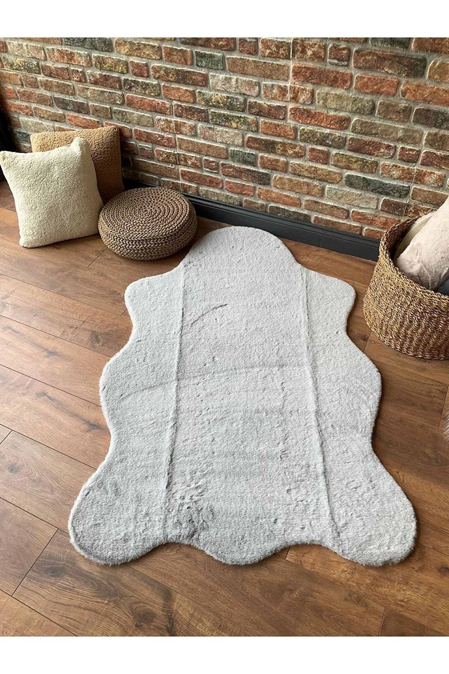 SARAZ HALI Tavşan Tüyü Post Peluş Ultra Yumuşak Post Puffy Gri
