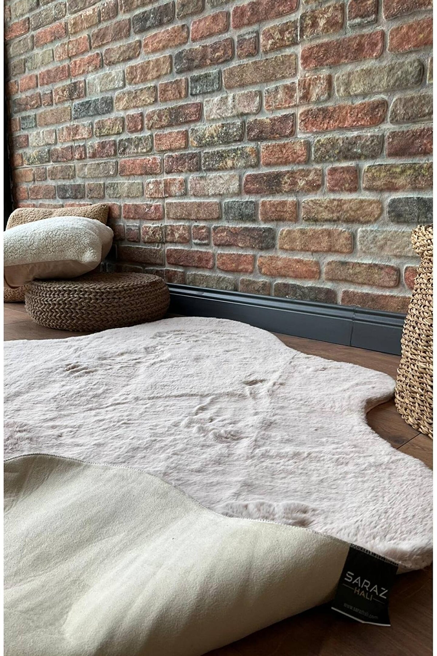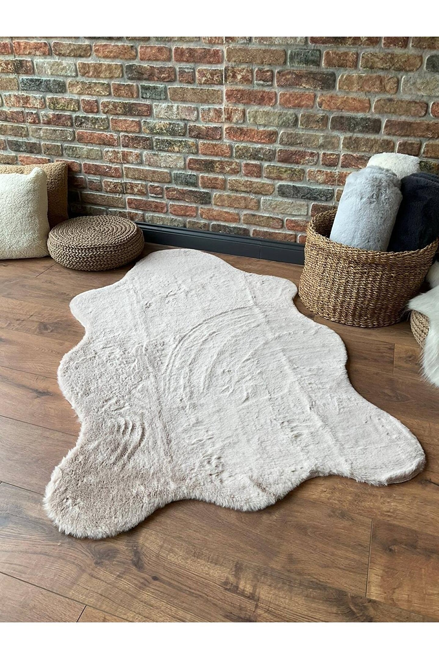 SARAZ HALI Tavşan Tüyü Post Peluş Ultra Yumuşak Post Puffy Kum Beji