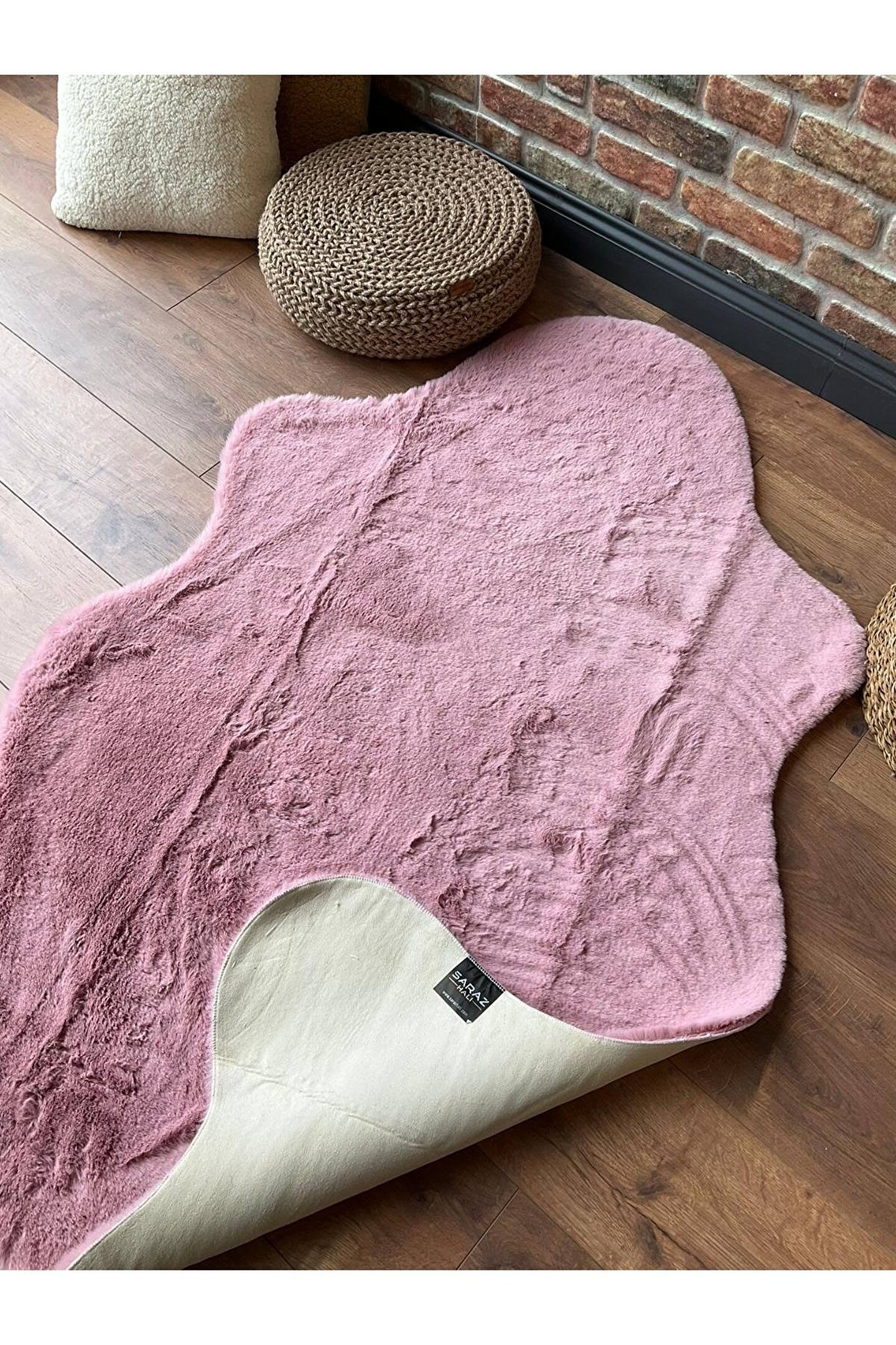 SARAZ HALI Tavşan Tüyü Post Peluş Ultra Yumuşak Post Puffy Pembe