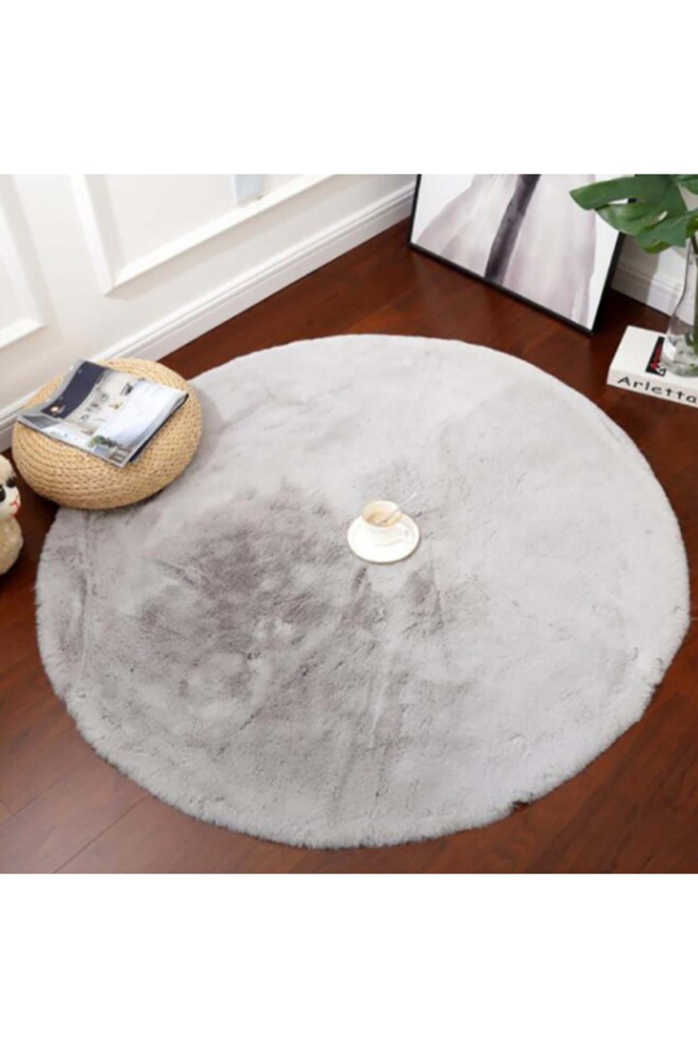 SARAZ HALI Tavşan Tüyü Yuvarlak Peluş Gri