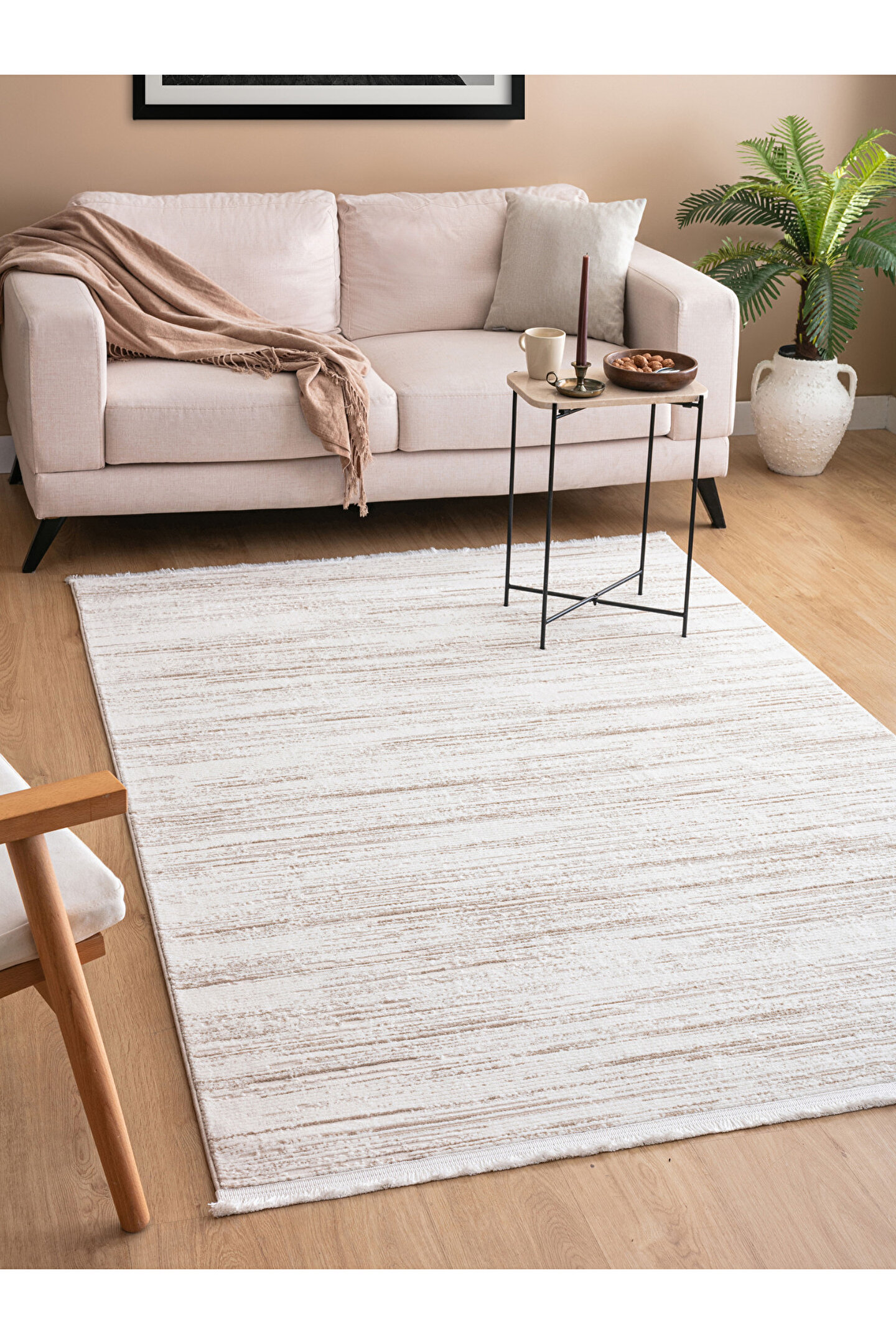 SARAZ HALI Vals Bej Salon Halısı Koridor Kesme Yolluk Yumuşak Doku Kaymaz Tozumaz Dokuma Makine Halısı Yolluk
