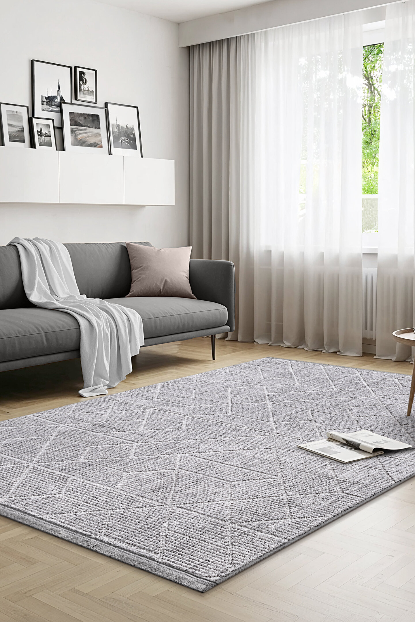 SARAZ HALI Yalın Bukle Salon Halısı Hav Vermez Mutfak Halısı Çocuk Odası Halısı Koridor 5579 GRİ