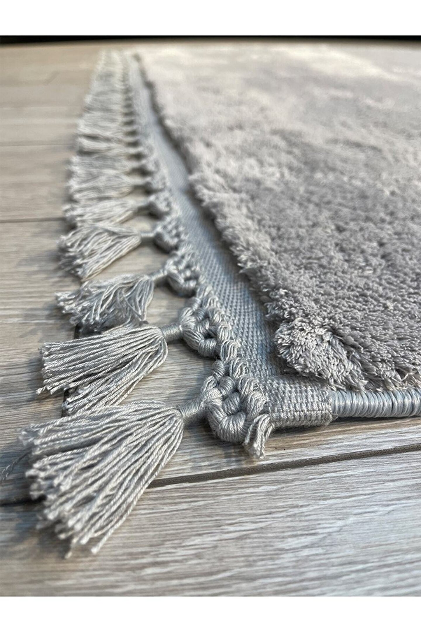 - Zarif gri tonuyla her dekorasyona uyum sağlayan yuvarlak puffy ponpon saçaklı yıkanabilir makine halısı, salon ve oturma odası gibi alanlarınızda şıklığı ve konforu bir arada sunar.; - Dayanıklı polyester materyali sayesinde uzun ömürlü kullanım vaat ederken, kolay temizlenebilir yapısı ile pratiklik sağlar.; - Klasik tema ve stil anlayışına sahip olan bu halı, zamansız tasarımıyla mekanınıza sıcaklık katar.; - Kaymaz taban özelliği ile güvenliğinizi ön planda tutarak olası kazaların önüne geçer; evinizdeki hareket özgürlüğünüzü artırır.; - Yuvarlak şekliyle modern ve minimalist dekorasyon tarzlarına mükemmel uyum sağlar; mekanınızda dengeli bir görünüm oluşturur.; - Jel taban teknolojisi sayesinde zeminde sabit durur ve kayma riskini azaltır; böylece aile üyelerinin güvenliğini arttırır.; - İnce hav yüksekliği (6 mm altı) ile hafif ve yumuşak bir dokunuş hissi verirken, düz saçak detayları estetik bir bitiş sağlar.; - 150 x 150 cm boyutlarındaki geniş ölçüsüyle geniş kullanım alanı sunarak farklı ihtiyaçlara cevap verir.