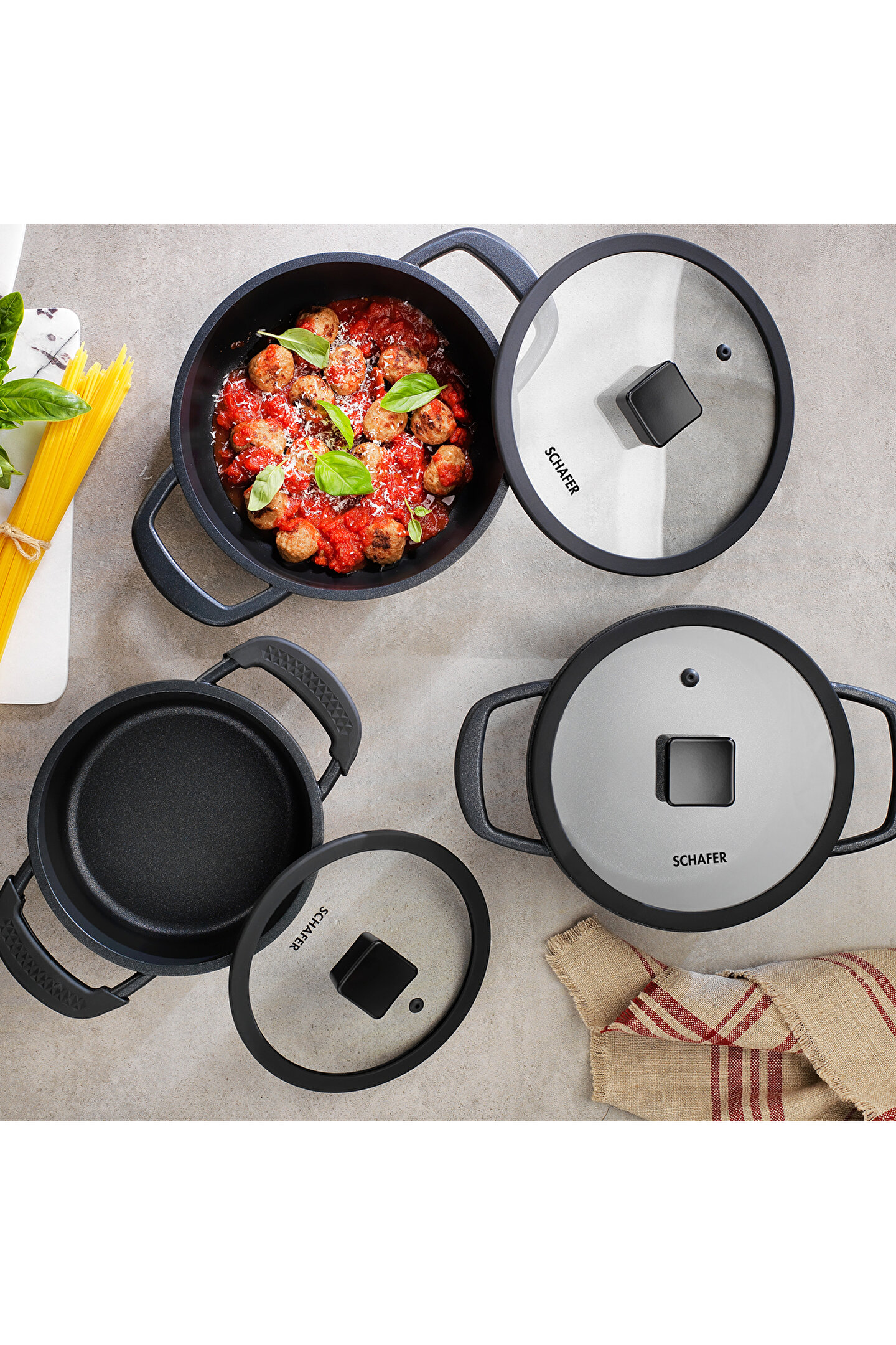 Schafer Hektor 3 lü Döküm Tencere Seti 6 Parça Siyah
