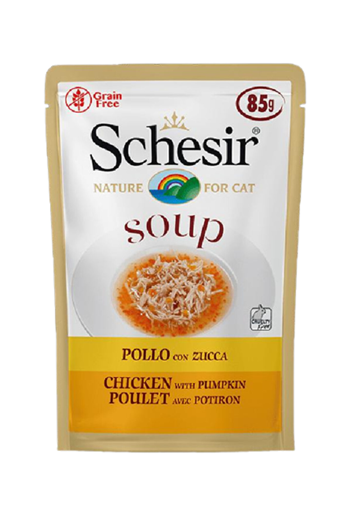 Schesir Tavuklu ve Balkabaklı Tahılsız Kedi Çorbası 85grYabani Tavuklu ve BalkabaklıYetişkin kediler için yaş mama.Boya ve koruyucu madde içermez %100 doğal bileşenler.Kediniz için en iyi kalite!İçerikTavuk %27,5, kabak %6, havuç %6, tapa nişastası %1,7, maya özü %1,3Analitik Bileşenler:Protein %5, ham yağ %1, ham lif %0,2, ham kül %0,4,nem %89