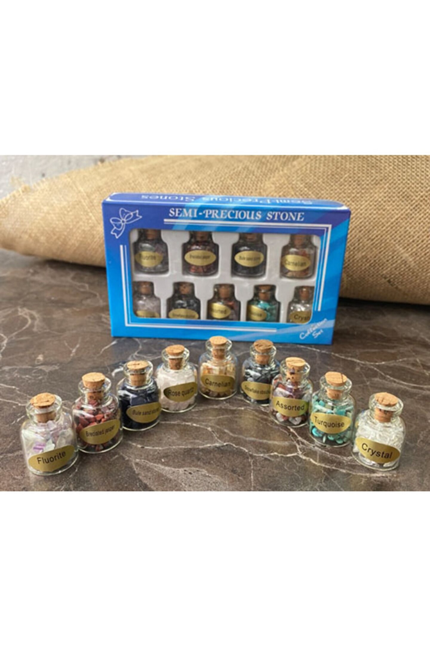 S&D SARRAF DOĞALTAŞ Karışık Kırık Doğal Taş Tüp Şişe Seti