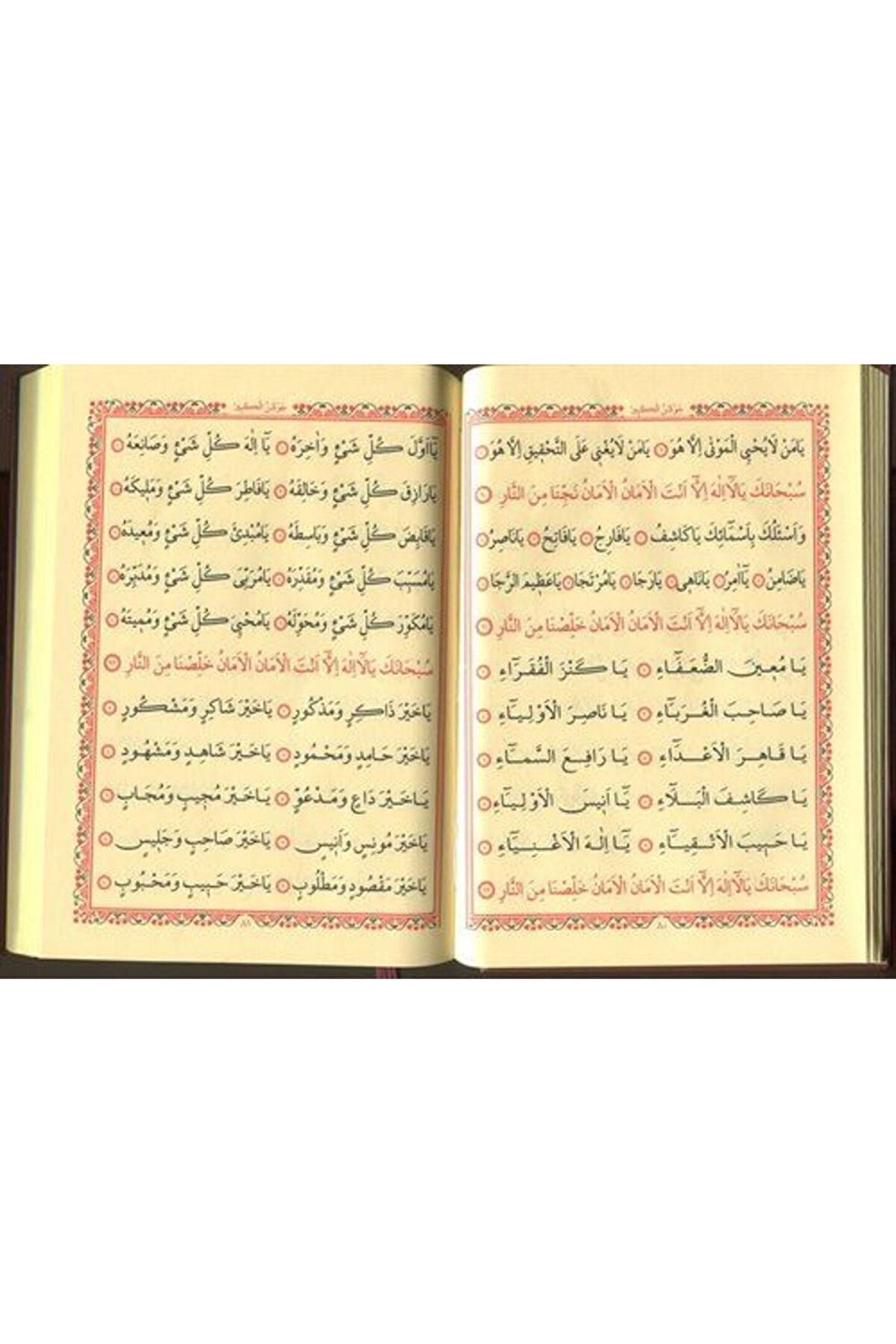 Büyük Cevşen Arapça Kolay Okunuşlu (Celcelutiye İlaveli) Çanta Boy-Ciltli-K-2001 Bediüzzaman Said Nursi / Sebat Yayınları Basım Yılı: 2023; Sayfa Sayısı: 285; Kağıt Türü: Şamuha Kağıt; Ebat: 14 x 20; Dil: Arapça; Cilt Durumu: Ciltli; ISBN: 9786259964010; Yazar: Bediüzzaman Said Nursi; Cenab-ı Allah.; Kuran-ı Kerim'de "Bana dua edin size cevap vereyim1' (mümin 60) ve "De ki: Duanız olmazsa Rabb'İm katında ne ehemmiyetiniz var?" (Furkan 77) buyurmaktadır.; Dua bir ibadettir.; Kulun Yaratıcı'yla olan münasebeti O'na olan bağlılığıdır.; Dua kulluğun ruhudur ve halis bir imanın neticesidir.; Dua yalvarmadır yakarmadır niyazdır ilticadır münacattır.; "Duanın en güzel en lâtîf en leziz en hazır meyvesi neticesi şudur ki: Dua eden adam bilir ki Birisi var ki onun sesini dinler derdine derman yetiştirir ona merhamet eder.; Onun kudret eli her şeye yetişir.; Bu büyük dünya hanında o yalnız değil; bir Kerîm Zat var ona bakar ünsiyet verir.; Hem onun ihtiyâcâtını yerine getirebilir ve onun düşmanlarını def edebilir bir Zât'ın huzurunda kendini tasavvur ederek bir ferah bir inşirah duyup dünya kadar ağır bir yükü üzerinden atıp Elhamdü lillâhi Rabbi'l-Âlemîn der.; " Bediüzzaman Said Nursînıin Ahmed Ziyâeddin Gümüşhanevinin Mecmua-tü'l-Ahzâb'ından ve Risale-i Nur'daki hakikatlerden derleyerek bir araya getirdiği Hizb-ü Envâri'l-Hakâikı'n-Nûriye isimli bu eserde en güzel ve en faziletli dua ve salavatlar yer almaktadır.; Sûreler: İlk bolümde Kur'an'ın en faziletli sûrelerinden olan Yasin Fetih Rahman Mülk ve Nebe süreleriyle birlikte namazlardan sonra okunmasında pek çok sevap olan "Lâ yestevi ve "Âmene'r-resûlü" aşirleri bulunmaktadır.; Cevşenü'l-Kebîr: bu bu kitapda Peygamber Efendimize (a.; s.; m.; ) Cebrail vasıtasıyla gelen Cevşenü'l-Kebîr isimli dua yer almaktadır.; Şüphesiz ki en mükemmel kulluğu Peygamber Efendimiz (a.; s.; m.; ) yapmıştır.; Ve Rabb'ine en güzel şekilde o yakarmış o dua etmiştir İşte Cevşenü'l-Kebir de onun en güzel ve en büyük dualarından birisidir.; Rivayete göre Peygamber Efendimiz (a.; s.; m.; ) zırhını giymiş Uhud Dağı'na gidiyordu.; Hava çok sıcaktı.; Bir ara başını kaldırıp gökyüzüne baktı ve Allah'a dua etti.; Birden açılmış gök kapılarından Cebrail'i (a.; s.; ) gördü.; Hz.; Cebrail nurlara bürünmüştü.; Resulullah'a "Cenab-ı Haktan sana selam tahiyye ve ikram getirdim" dedi.; Peygamberimiz (a.; s.; m.; ) selamını aldıktan sonra Cebrail (a.; s.; ) getirdiği duayı takdim etti ve şöyle dedi: "Üzerinden zırhını çıkar ve bu duayı oku.; Bu duayı üzerinde taşır ve okursan zırhtan daha büyük tesiri vardır.; " Peygamberimiz (a.; s.; m.; ) "Bu duanın tesiri sadece bana mı mahsus yoksa ümmetime de şamil mi?" diye sordu.; Cebrail (a.; s.; ) şu müjdeyi verdi: "Ya Resulallah! Bu dua Cenab-ı Allah'ın sana ve ümmetine bir hediyesidir.; Bunun sevabını Allah'tan başka kimse takdir edemez.; " İşte Cevşenü'l-Kebir böyle büyük bir duadır.; Muhtevasının derinliği ifadelerinin akıcılığı ve okunmasından elde edilecek dünyevî ve uhrevî mükafatlara dair rivayetler onu tüm Müslümanların elinden bırakamadığı dualar arasına kalmıştır.; Bu kitapdaki diğer Dualar: Münacatül Kuran Tahmidiye Hülasatül Hülasa Tazarrü ve Niyaz Celcelütiye Evradı Kudsiye Delalin-nur Sekine Veysel Karanini Münacatı Dua-i Tercuman-i Azam ve Dua-i İsmi-Azam