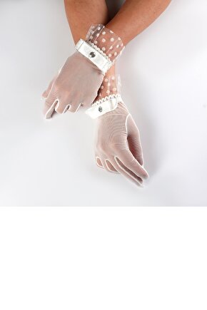 Zarif taş işlemeleriyle süslenmiş, beyaz likra tül gelin eldiveni, şıklığınızı tamamlayacak zarif bir aksesuardır; Esnek ve yumuşak dokusuyla konforlu bir kullanım sunar, düğün gününüzde ellerinizi sıcak tutar; Taşlı modeli ile göz alıcı bir görünüm sağlar ve gelinliğinizle mükemmel uyum sağlar; Kolayca takılıp çıkarılabilir yapısı sayesinde düğün boyunca rahatça hareket etme özgürlüğü sunar;