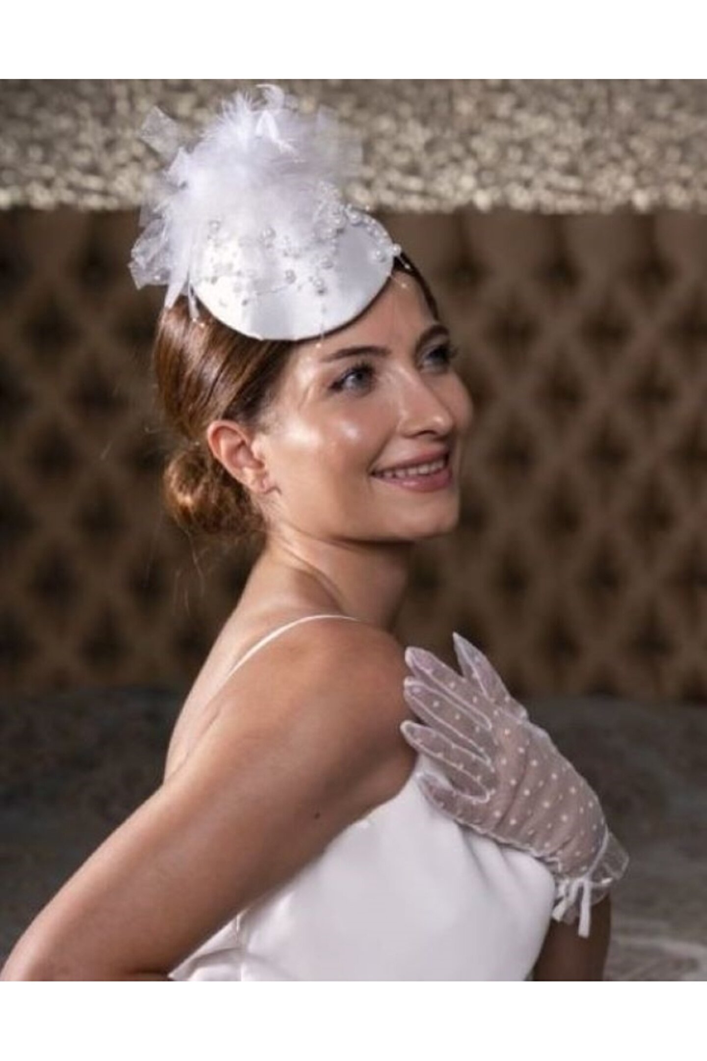 SeddA KIRIK BEYAZ İNCİLİ TÜYLÜ GELİN KEP VİOLET ŞAPKA