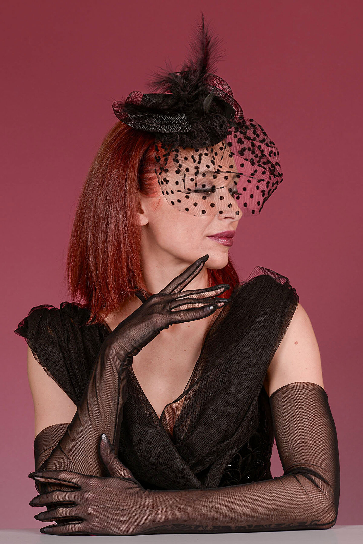 Siyah Puantiyeli Gelin Kepi Nikah Şapkası Ve Uzun Tül Gelin Eldiveni Kombin Set