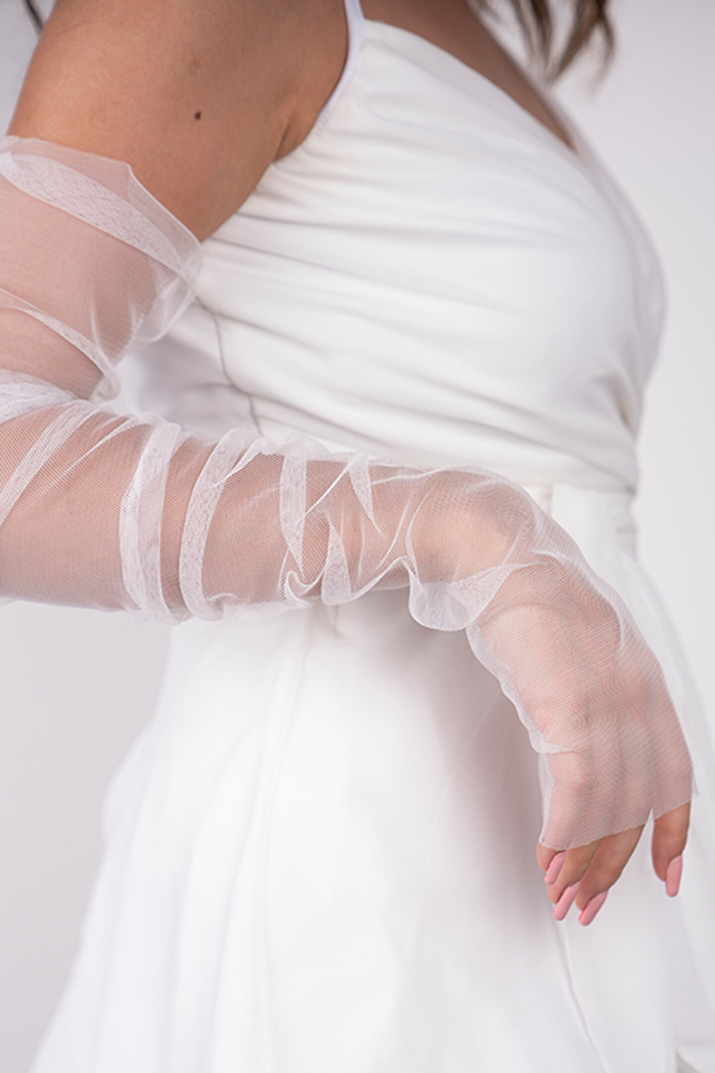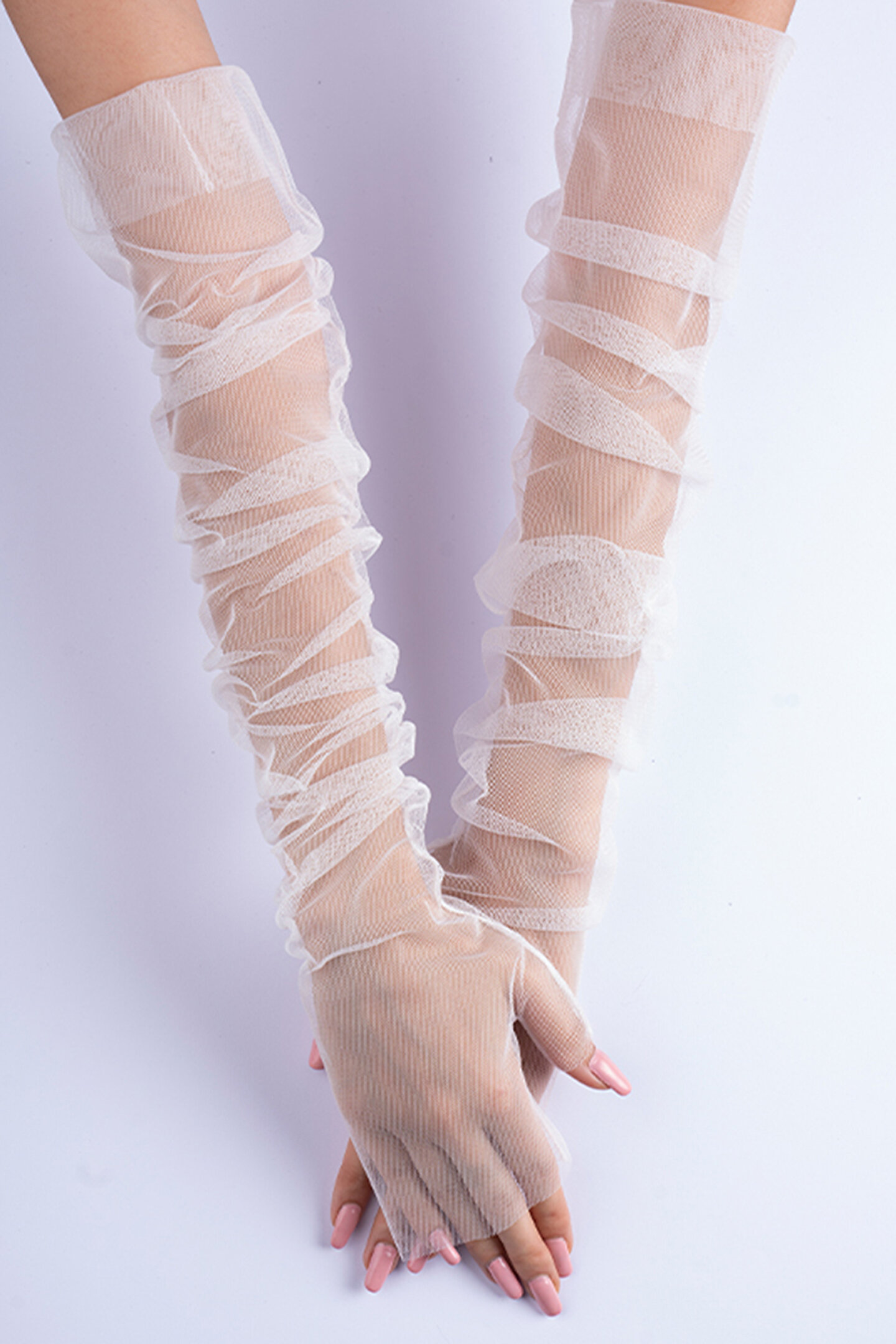 Gençlerin enerjisini ve stilini yansıtan beyaz tül kesik parmak eldiven, düğün, balo ve parti gibi özel günlerde şıklığınızı tamamlar; Zarif tül detayları ile süslenmiş bu eldivenler, gençlerin zarafetini ön plana çıkarırken, konforlu bir kullanım sunar; Her yaş grubuna hitap eden tasarımıyla, gençlerin moda anlayışını benimseyen bu eldivenler, özel günlerdeki şıklığınızı tamamlar;