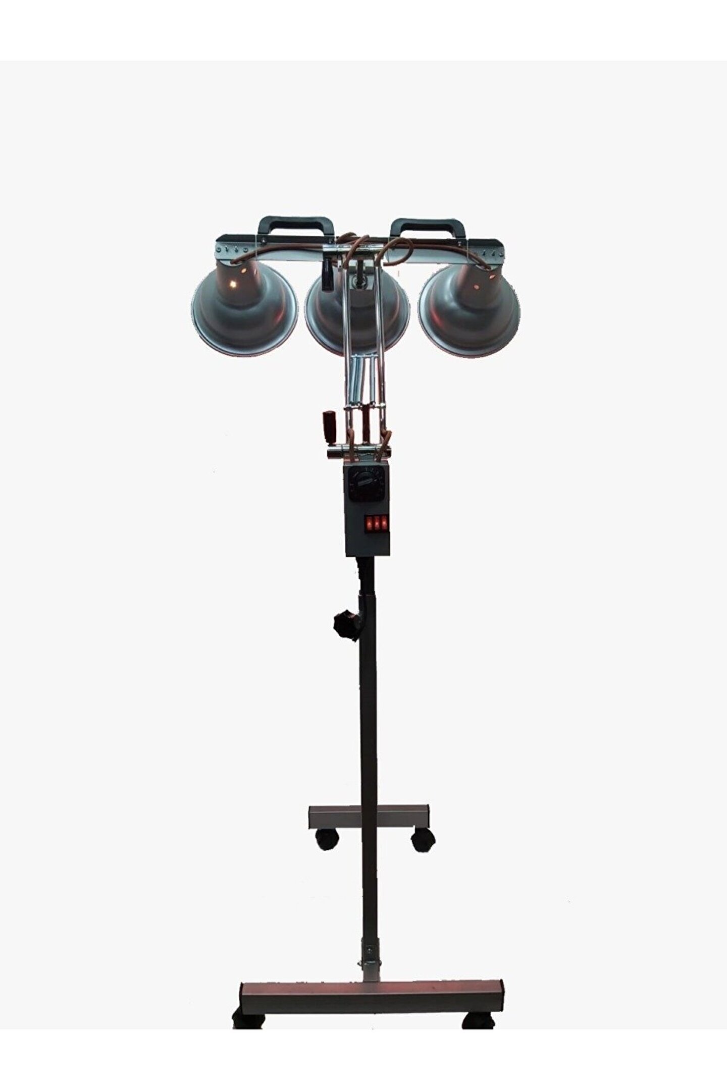Tanım * 0; 60dk zaman saati ile istenilen zamana ayarlanıp zamanı dolunca kapanma özelliğine sahip; * Üzerindeki sinyal lambası ile cihazın açık veya kapalı olduğu takip edilebilir; * Lambanın kafa kısmında bulunan tutmaç ile güvenli şekilde temas edilebilinir; * Lambanın direk kısmında bulunan ayar vidalarıyla istenilen şekilde ve açıda hastaya uygun olarak pozisyonlandırılabilir; * 360 derece dönme özelliğine sahip tekerlekler ile kolay taşınılabilir; Ortalama 7kg ağırlığındadır; * Üzerinde üç adet ampul takılacak yer vardır; 3 Adet Enfraruj Lambanın gücü 750 watt'tır; * Ürün 220 V 50 Hz Şehir Elektriği ile çalışmaktadır; * Üzerinde Ultraviyole(UV) ve Enfraruj(IR) ampulleri çalıştırabilir;