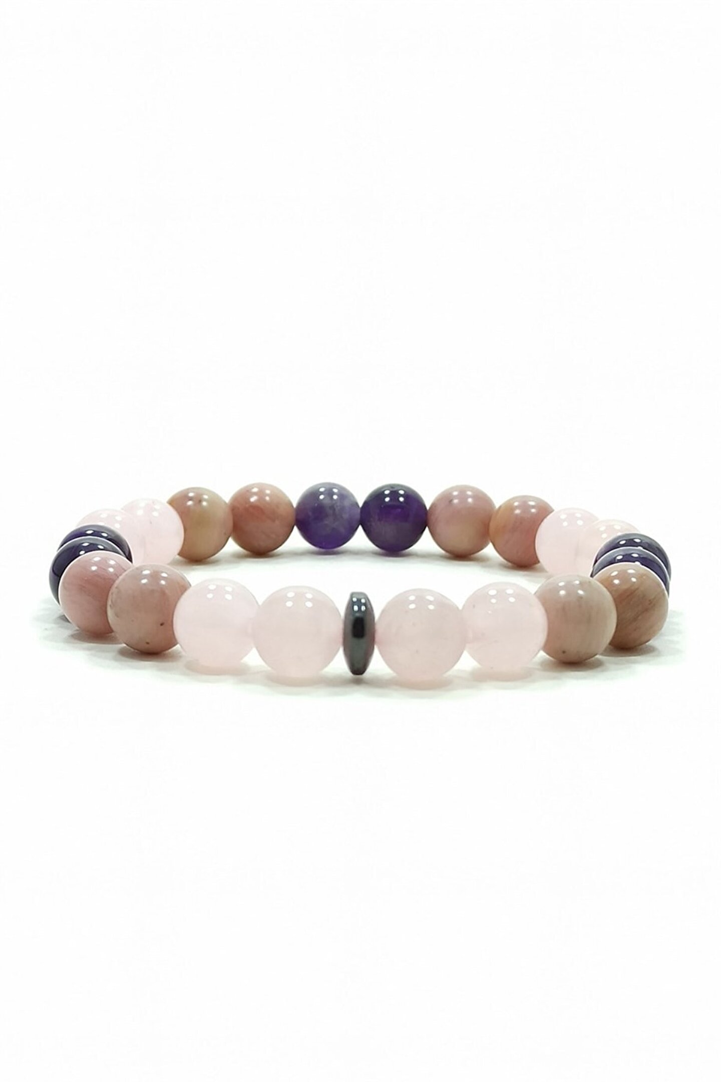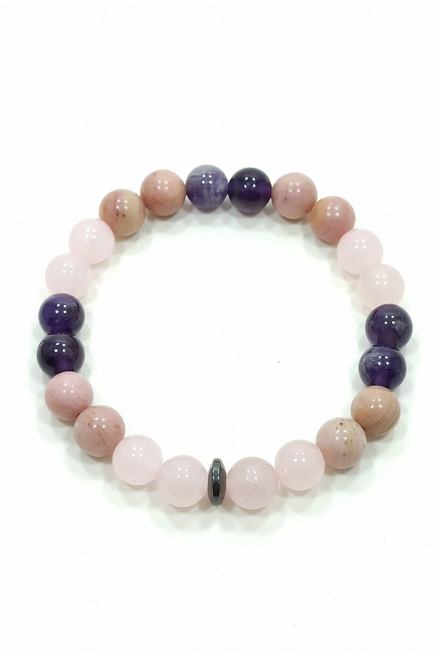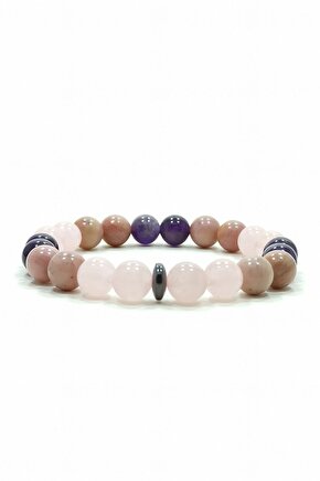 Sense Handmade Aşk Bilekliği Pembe Kuvars Rodonit Ametist Hematit Doğal Taş Bileklik