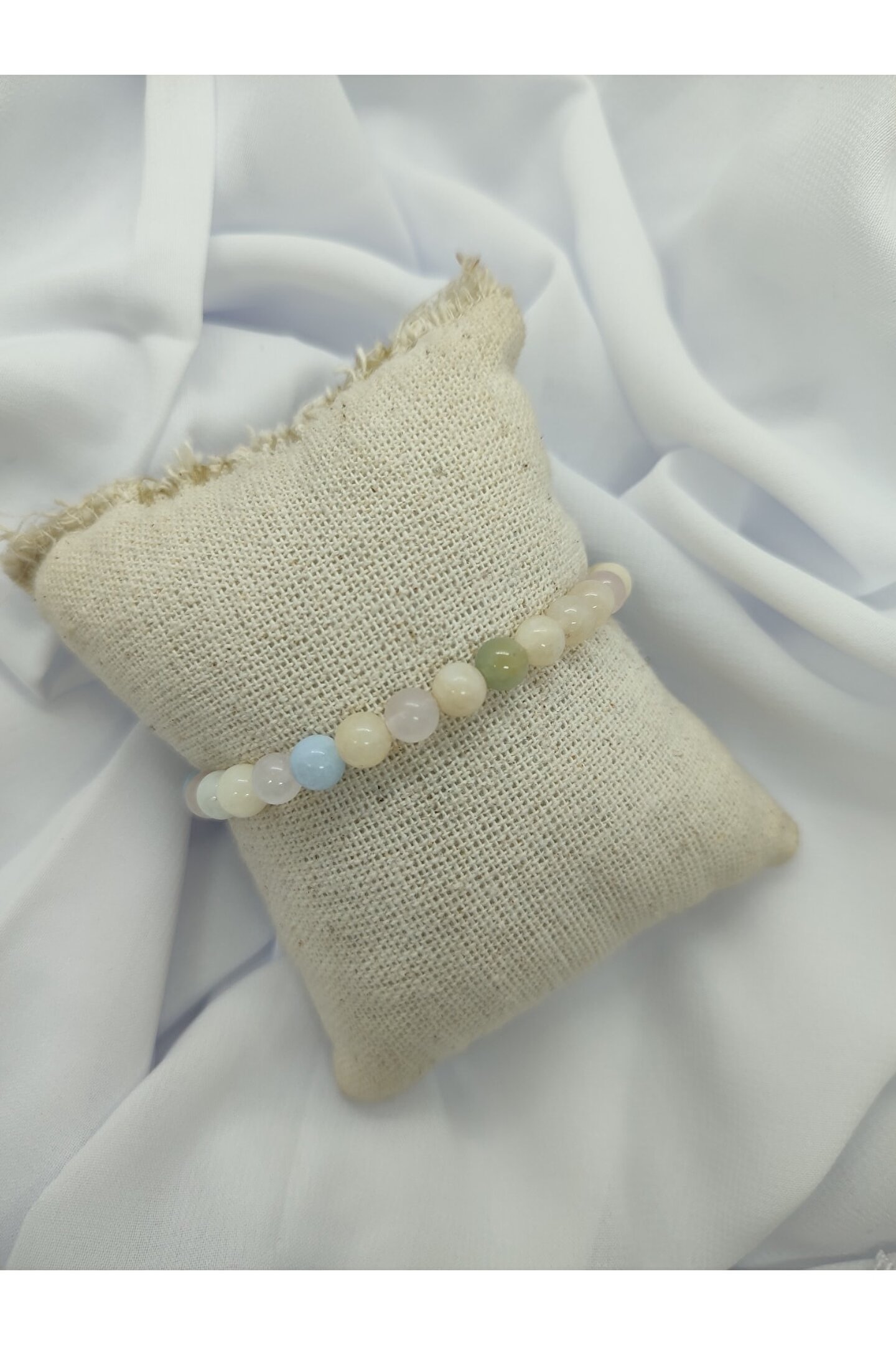 Doğal taş bileklik, her bir bileklikte bulunan benzersiz desen ve renklerle doğanın güzelliklerini parmaklarınıza taşır; Morganit taşı, enerjiyi dengelemeye ve stresi azaltmaya yardımcı olan doğal bir taş olarak bilinir; Doğal taş kullanımı sayesinde, bileklik hem şık hem de doğayla iç içe bir aksesuar deneyimi sunar; Morganit taşı, bileklikteki zarif tasarımıyla günlük kullanım için idealdir ve her türlü kıyafetle uyum sağlar;