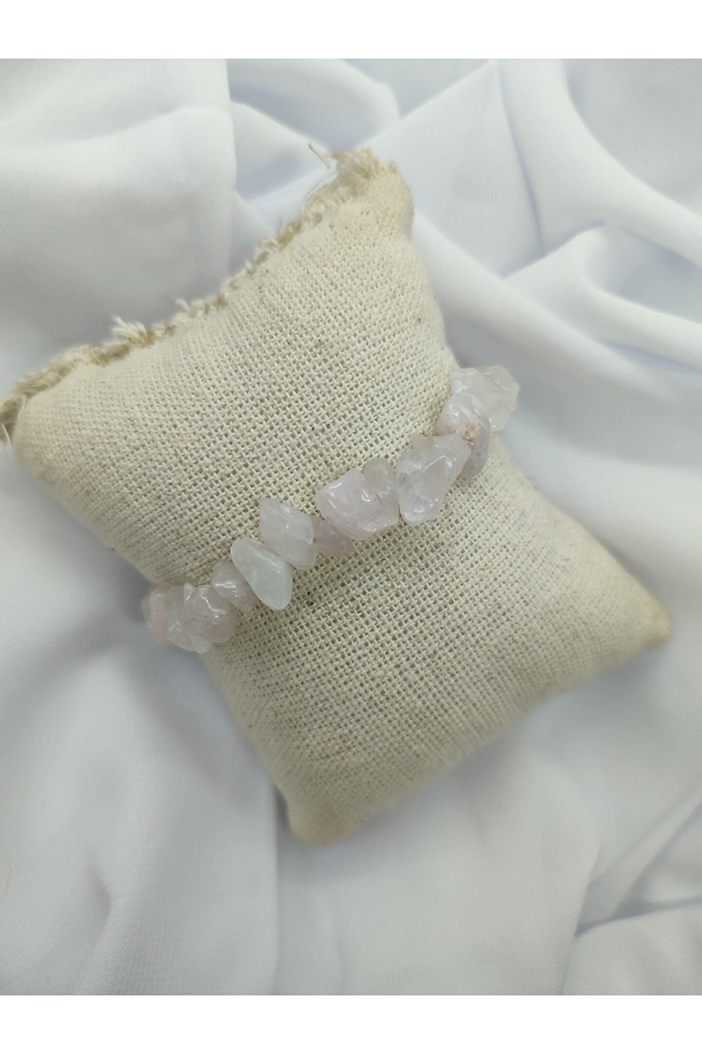 Doğal taş kullanımı sayesinde her bileklik benzersiz ve otantik bir görünüm sunar; Pembe kuvars taşı, bilekliğe zarif bir renk ve enerji katarken, şıklığınızı tamamlar; Doğal taş bileklik, hem günlük kullanım hem de özel günler için ideal bir aksesuar seçeneği sunar; El yapımı ve el işçiliği ile üretilmiş olması, her bir bilekliğin eşsiz ve özgün olmasını sağlar;