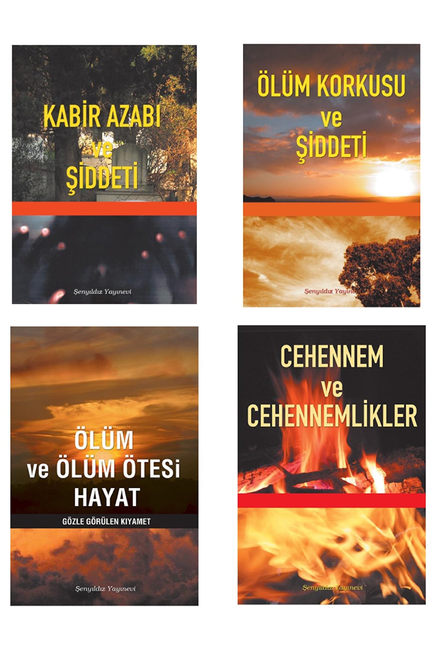 Cennet ve Cennetlikler ( Sayfa Sayısı: 64 / Ebat: 16,5x23,5 ) Cehennem ve Cehennemlikler ( Sayfa Sayısı: 64 / Ebat: 16,5x23,5 ) İslam Büyüklerinden Dini Hikayeler ( Sayfa Sayısı: 80 / Ebat: 16,5x23,5 ) Kabir Azabı ve Şiddeti ( Sayfa Sayısı: 63 / Ebat: 16,5x23,5 ) Ölüm Korkusu ve Şiddeti ( Sayfa Sayısı: 64 / Ebat: 16,5x23,5 ) Ölüm ve Ölüm Ötesi Hayat Gözle Görülen Kıyamet ( Sayfa Sayısı: 80 / Ebat: 16,5x23,5 ) Peygamberimizin Hayatı ( Sayfa Sayısı: 64 / Ebat: 16,5x23,5 ) Rüya Tabirleri ( Sayfa Sayısı: 80 / Ebat: 16,5x23,5 ) İlahiler ( Sayfa Sayısı: 80 / Ebat: 16,5x23,5 ) Resimli ve İlaveli Namaz Hocası ( Sayfa Sayısı: 64 / Ebat: 16,5x23,5 ) Peygamberler Tarihi ( Sayfa Sayısı: 64 / Ebat: 16,5x23,5 );