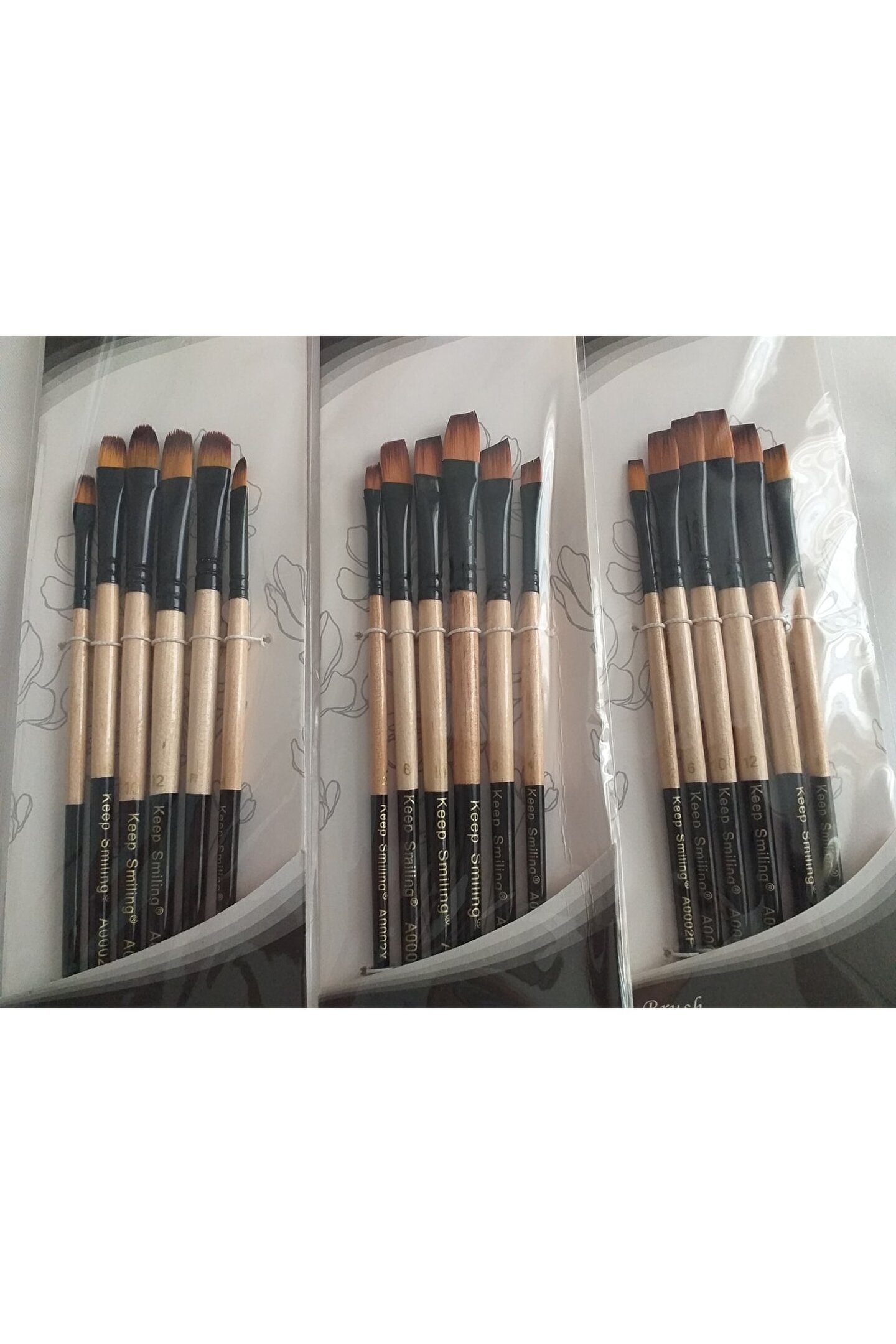 18 li karışık fırça seti ; 6 adet yan kesik 6 adet düz kesik 6 adet kedidili fırça