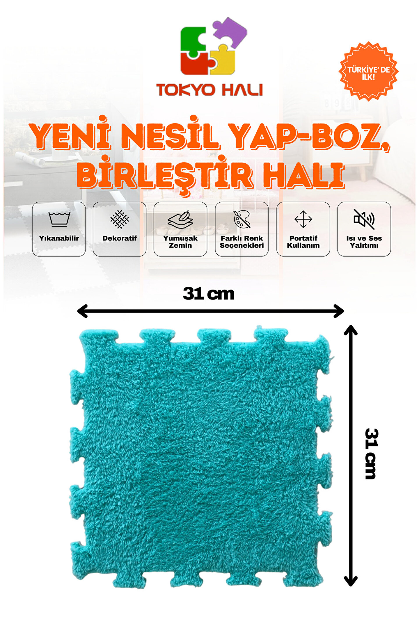 Sereniqa Turkuaz Peluş Puzzle Halı, Kendi Tasarımını Oluştur, Yapboz Halı, Peluş Halı