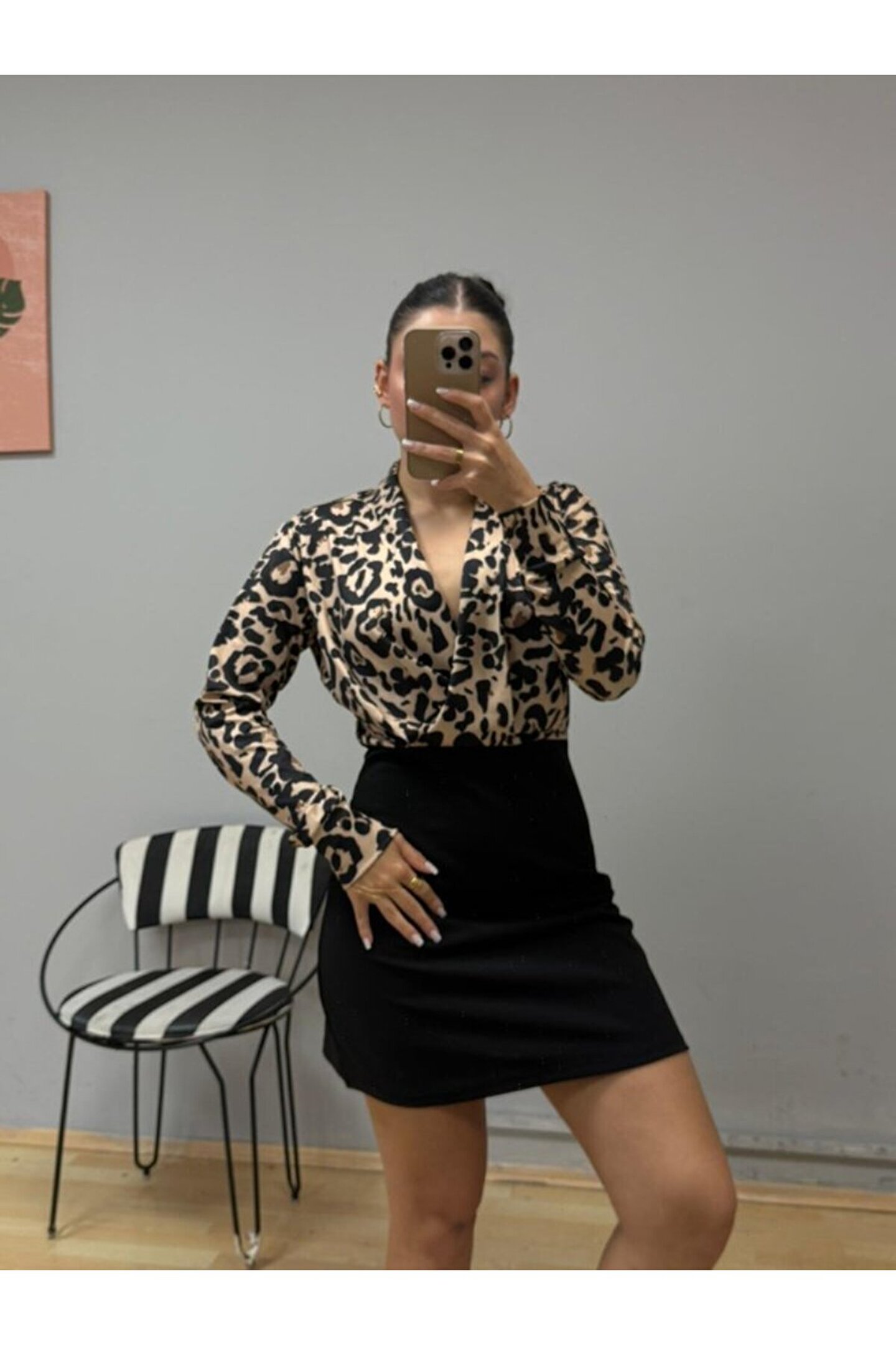 Serero EQURİ Kadın Uzun Kollu Kruvaze Yakalı üst Dalgıç Alt Ithal Krep Mini Elbise